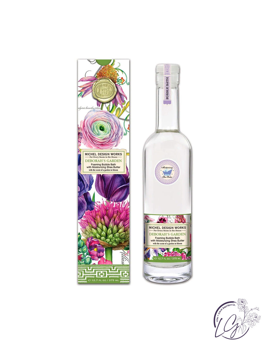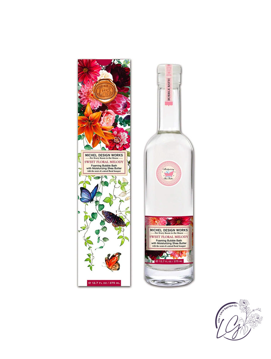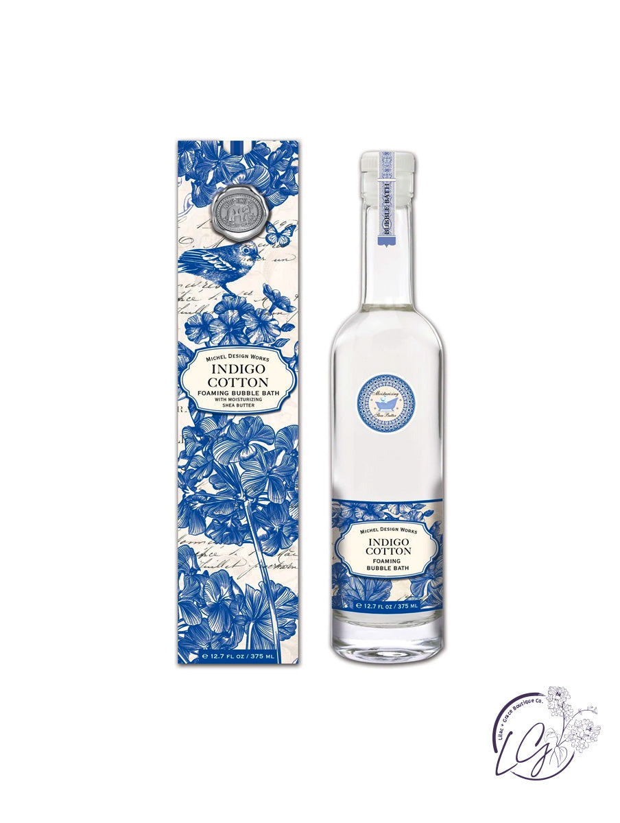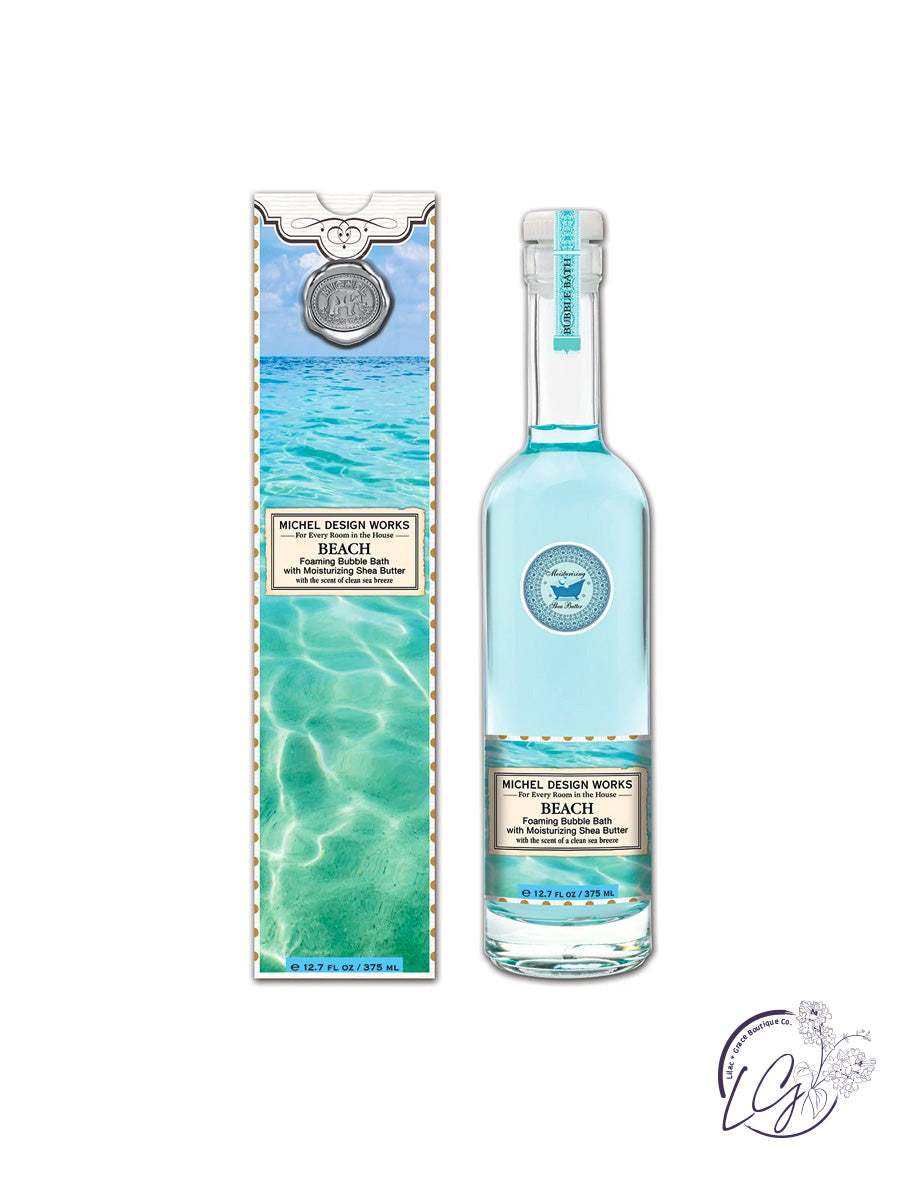 Our tinted bubble bath comes in a slender, elegant glass bottle packaged in a beautiful keepsake gift box.