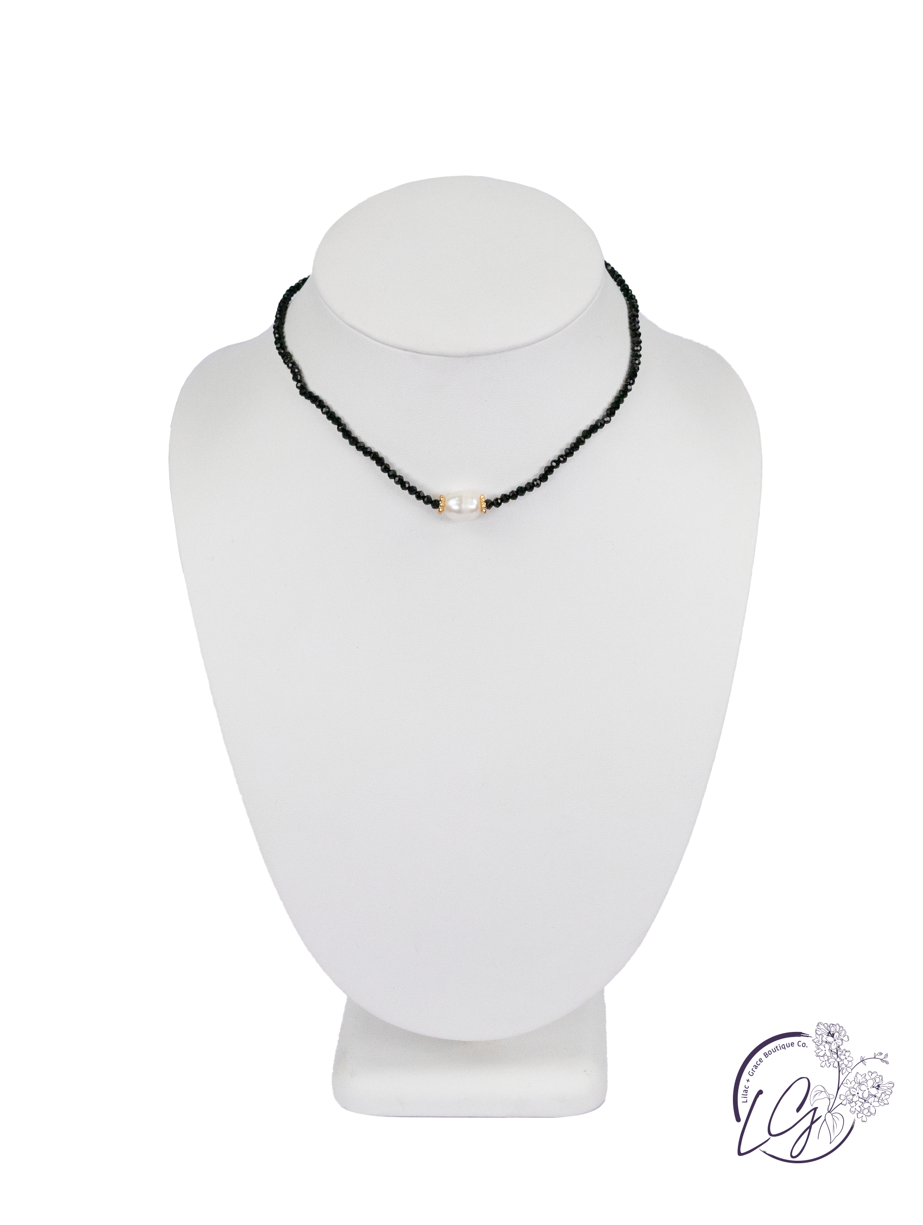 Black Necklace W/ Pearl Charm