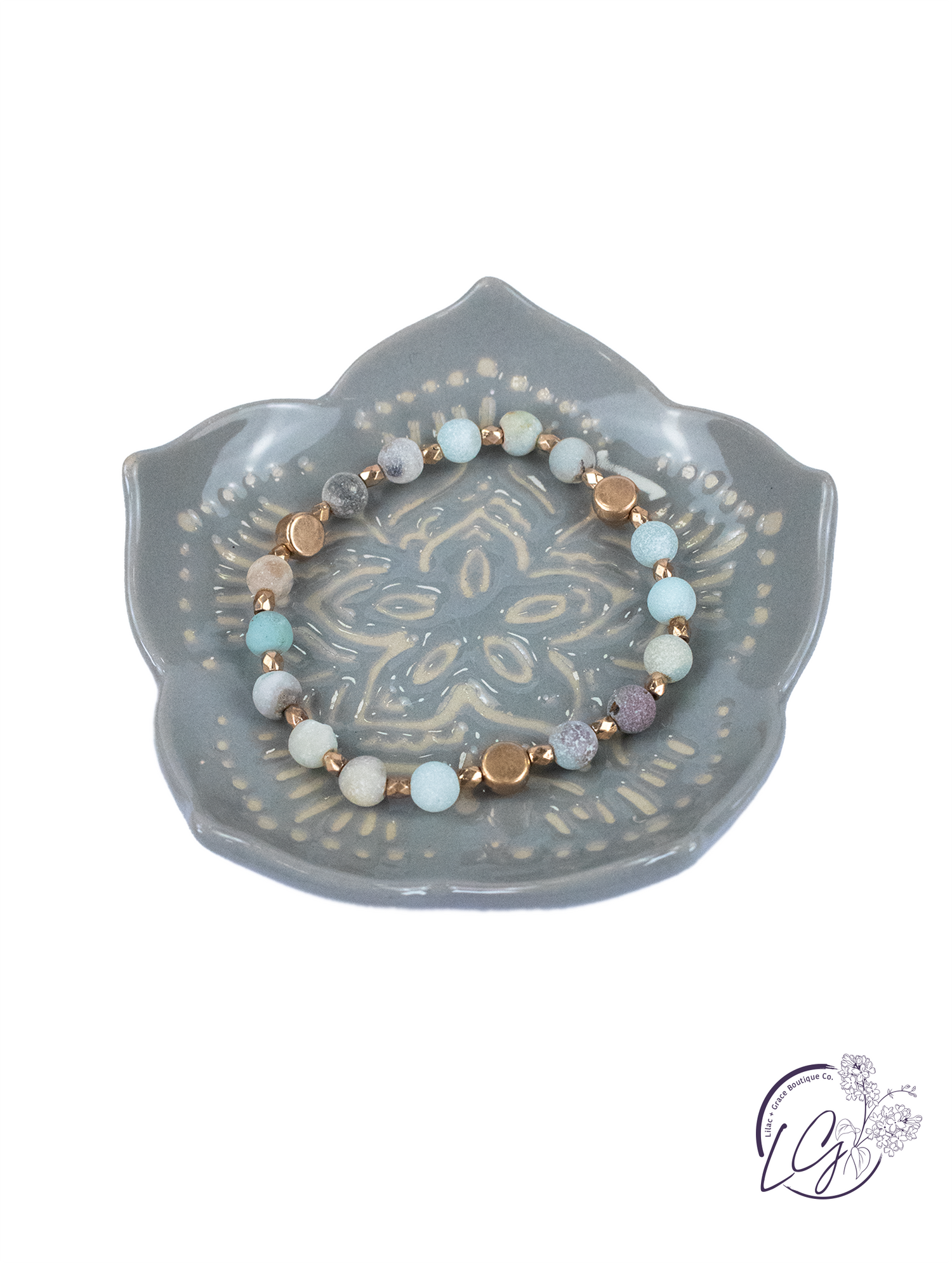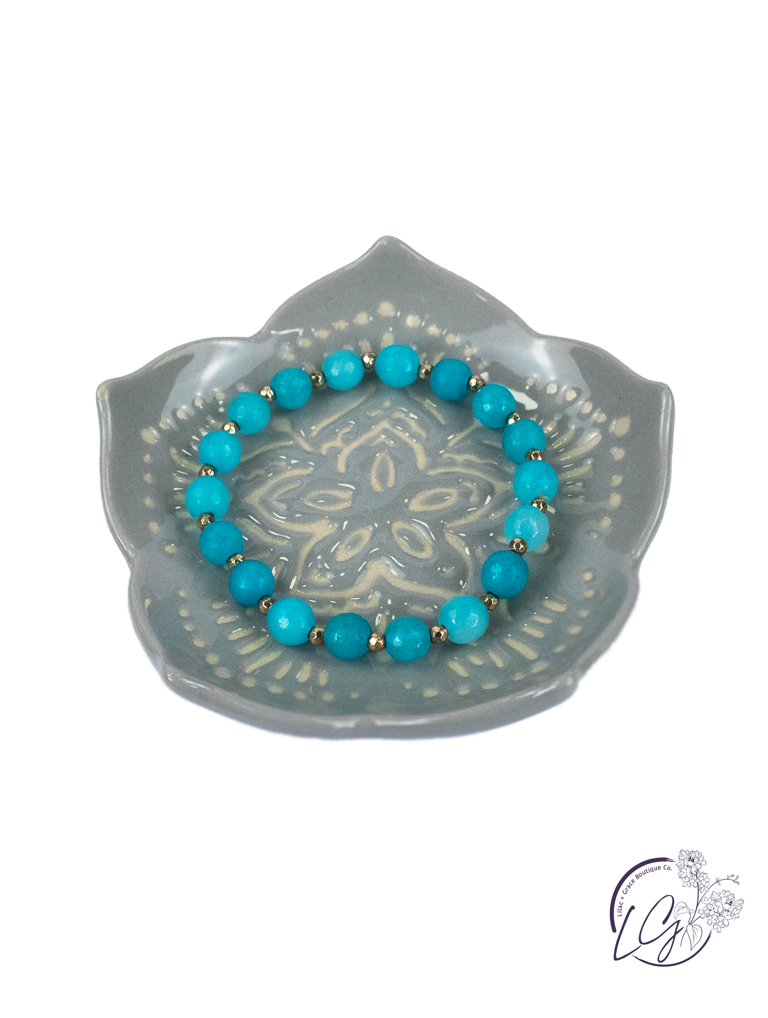 The Blue Stretch Bracelet is a vibrant and versatile accessory. Made from durable elastic material, it easily stretches to fit most wrist sizes. The beautiful blue color adds a pop of color to any outfit, making it perfect for both casual and dressy occasions. Whether worn alone or stacked with other bracelets, it adds a stylish touch to your look.