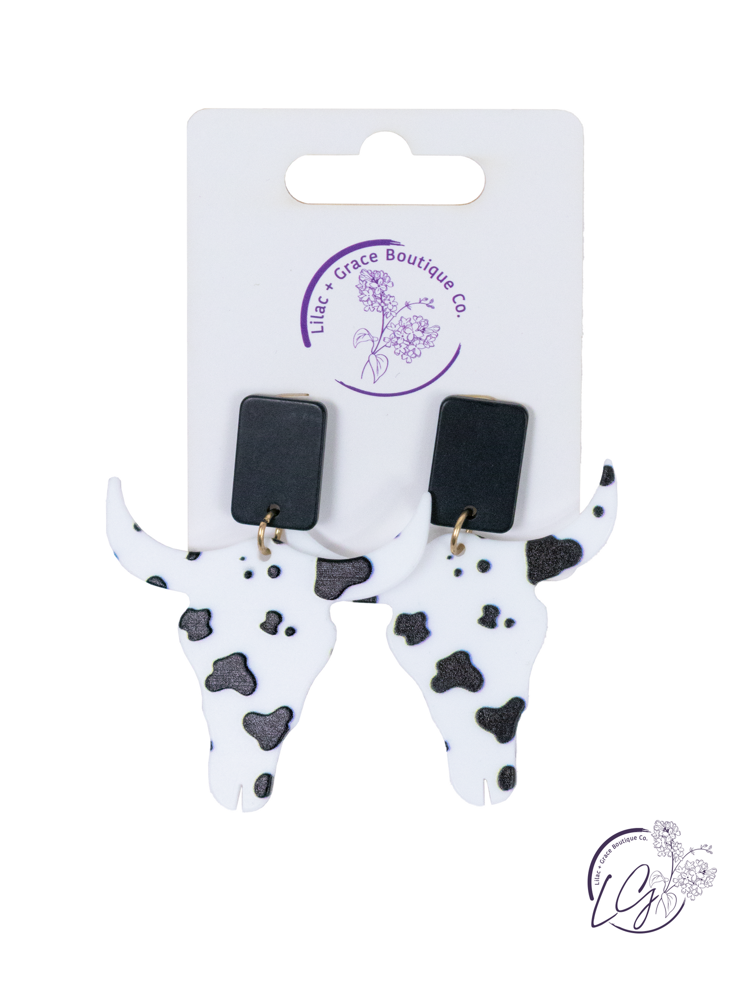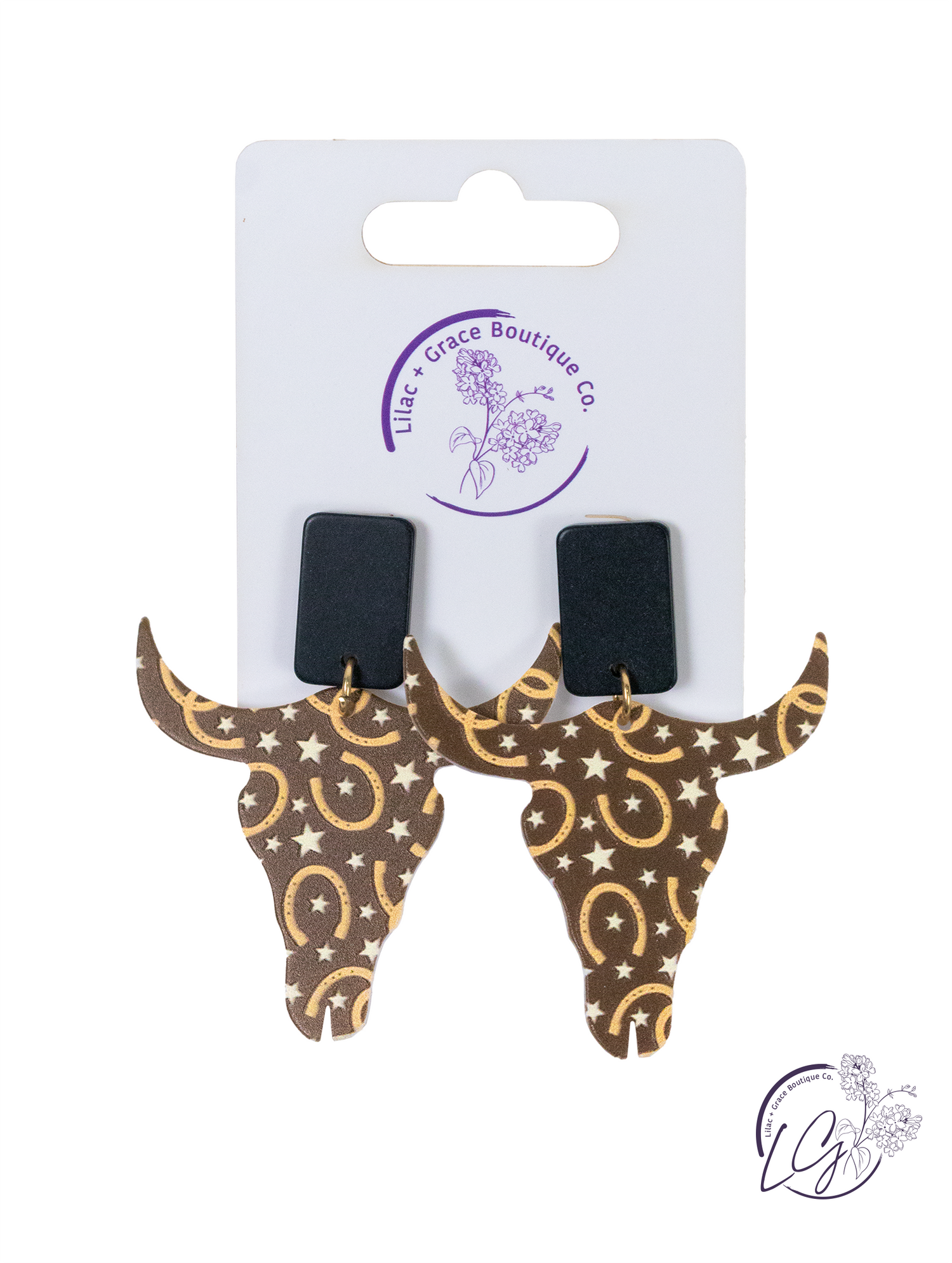 The Boho Chic Bull Skull Earrings encapsulate the essence of free-spirited style with a touch of Southwestern flair. These earrings feature intricately designed bull skulls adorned with bohemian-inspired patterns and motifs. Each piece exudes a sense of wanderlust and adventure, reminiscent of desert landscapes and nomadic journeys.