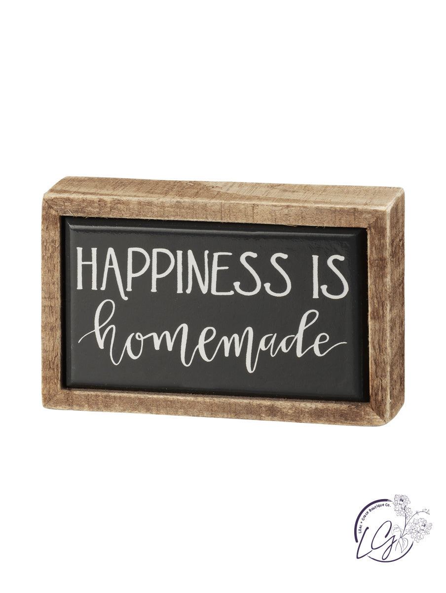A wooden box sign mini featuring a hand lettered sentiment and tile-like enamel finish for added appeal. Easy to hang or can free-stand alone.