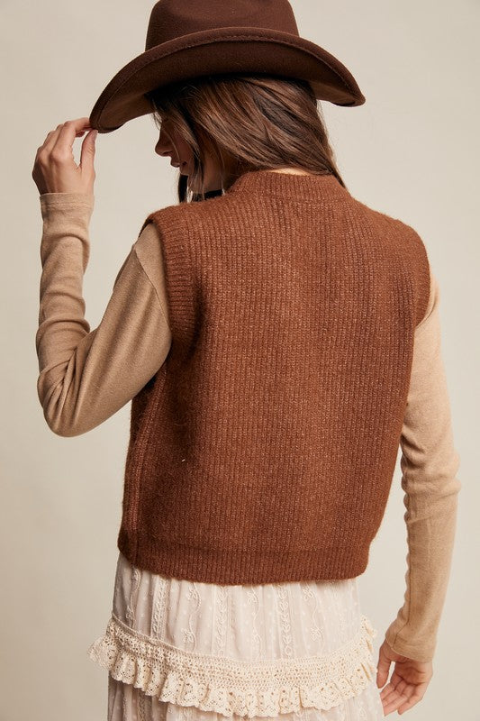 Cozy meets cute in the Cactus Kiss Button Vest! This ribbed knit sleeveless top features a flattering V-neck and a charming tortoiseshell button that adds just the right touch of flair. Its relaxed, slightly boxy fit and cropped length make it perfect for layering over your favorite long sleeves or dresses. Whether you're pairing it with high-rise jeans or a flowy skirt, this vest brings a playful, rustic vibe to your look while keeping you comfy and stylish all day long.