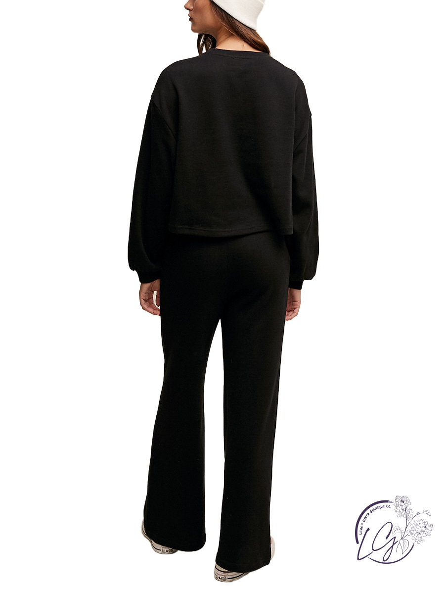 Get your knit on with this lounge long sleeve top featuring a round neck sweat top and wide leg pants made of soft cotton polyester. The elastic waist and functional pockets make this set both comfortable and convenient for lounging. And don't worry about fit, our model is 5'10" and wears a size Small, but you can't put a measurement on feeling good!
