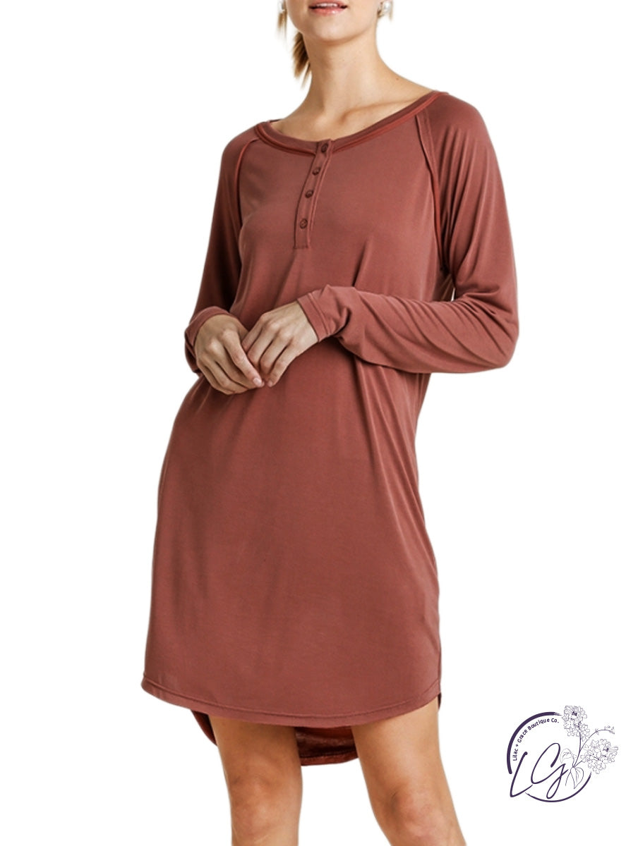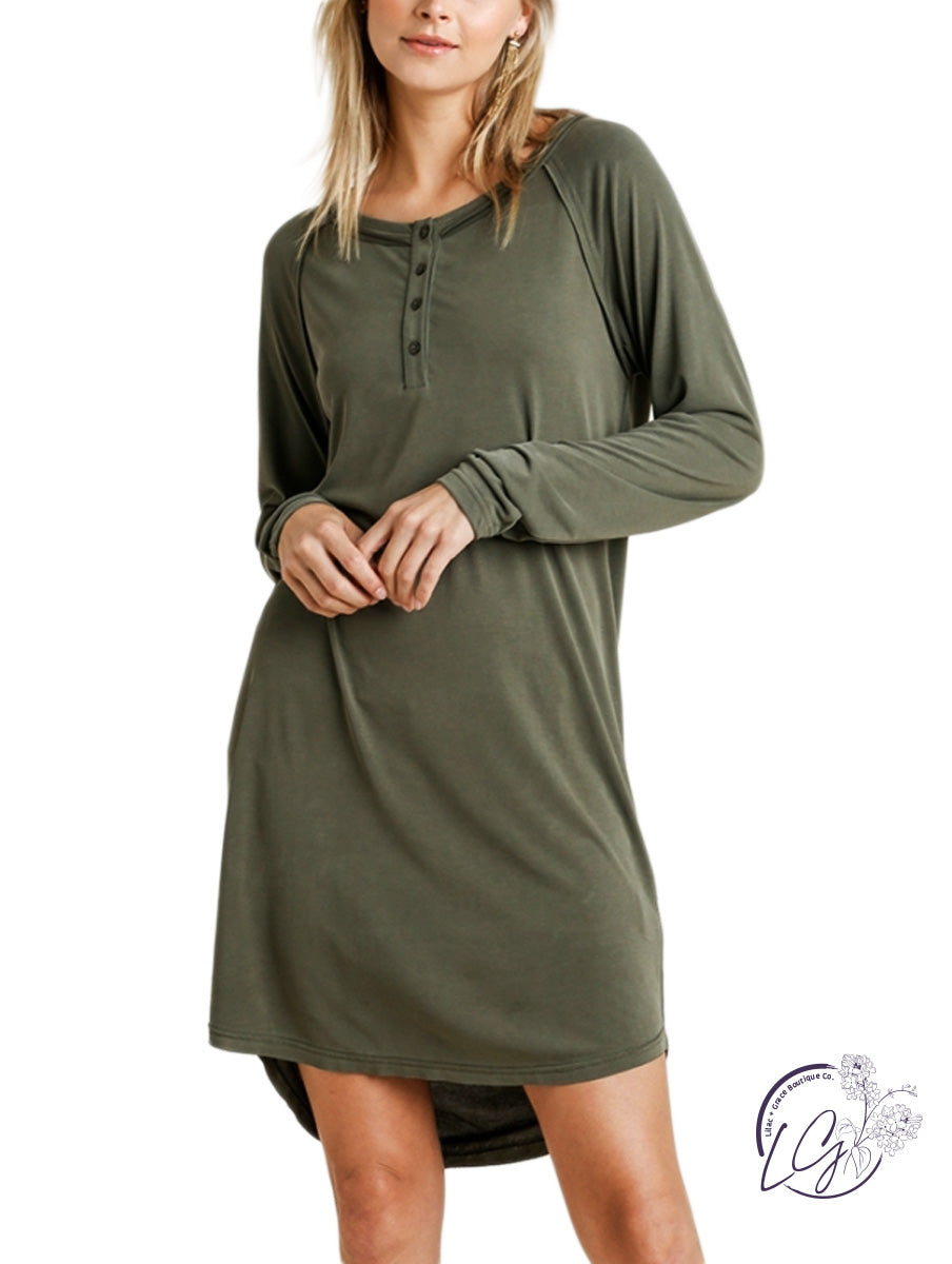 Cupro Button Front Long Sleeve Dress with Raw Edged Hem