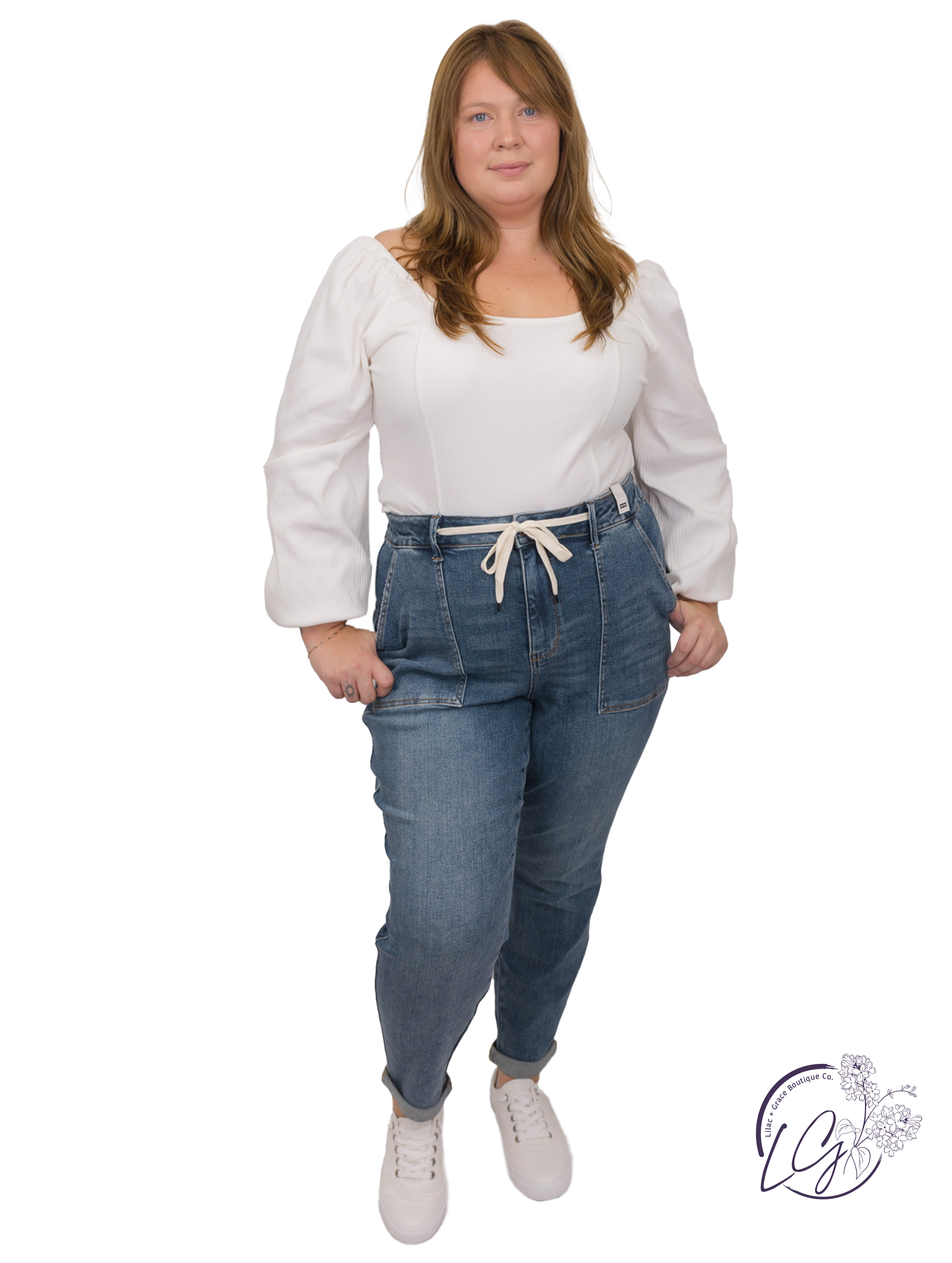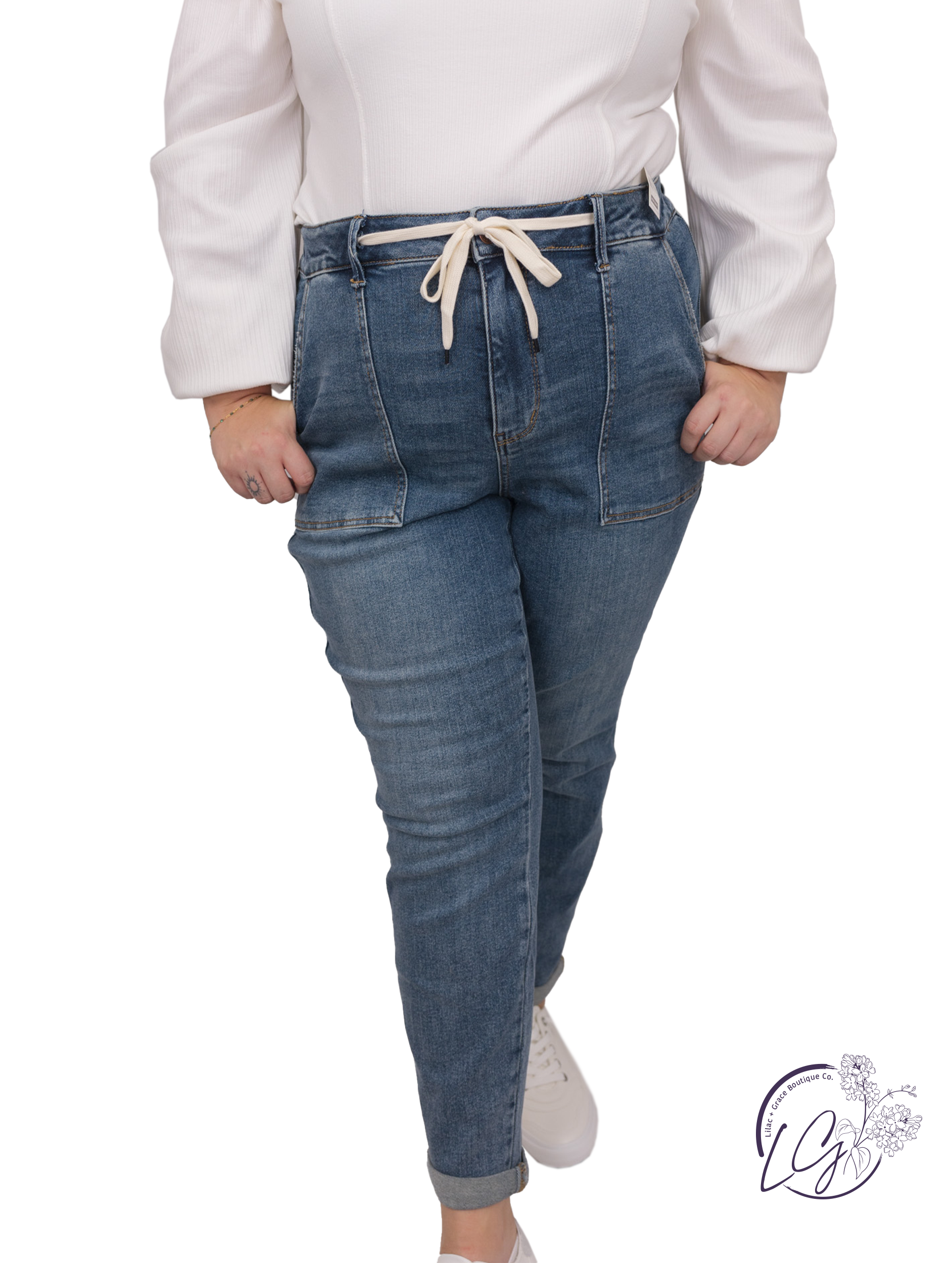 Curvy Briella Elastic Drawstring & Cuffed Jogger By Judy Blue