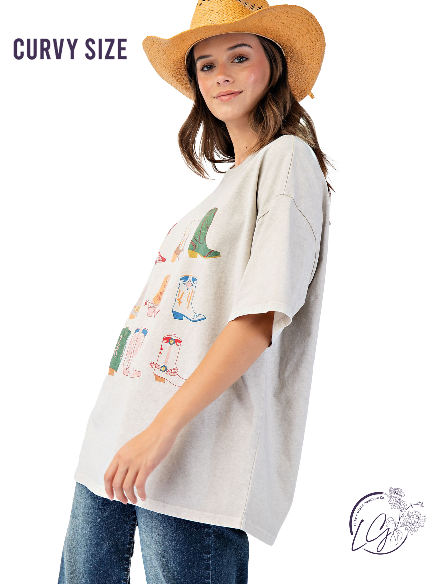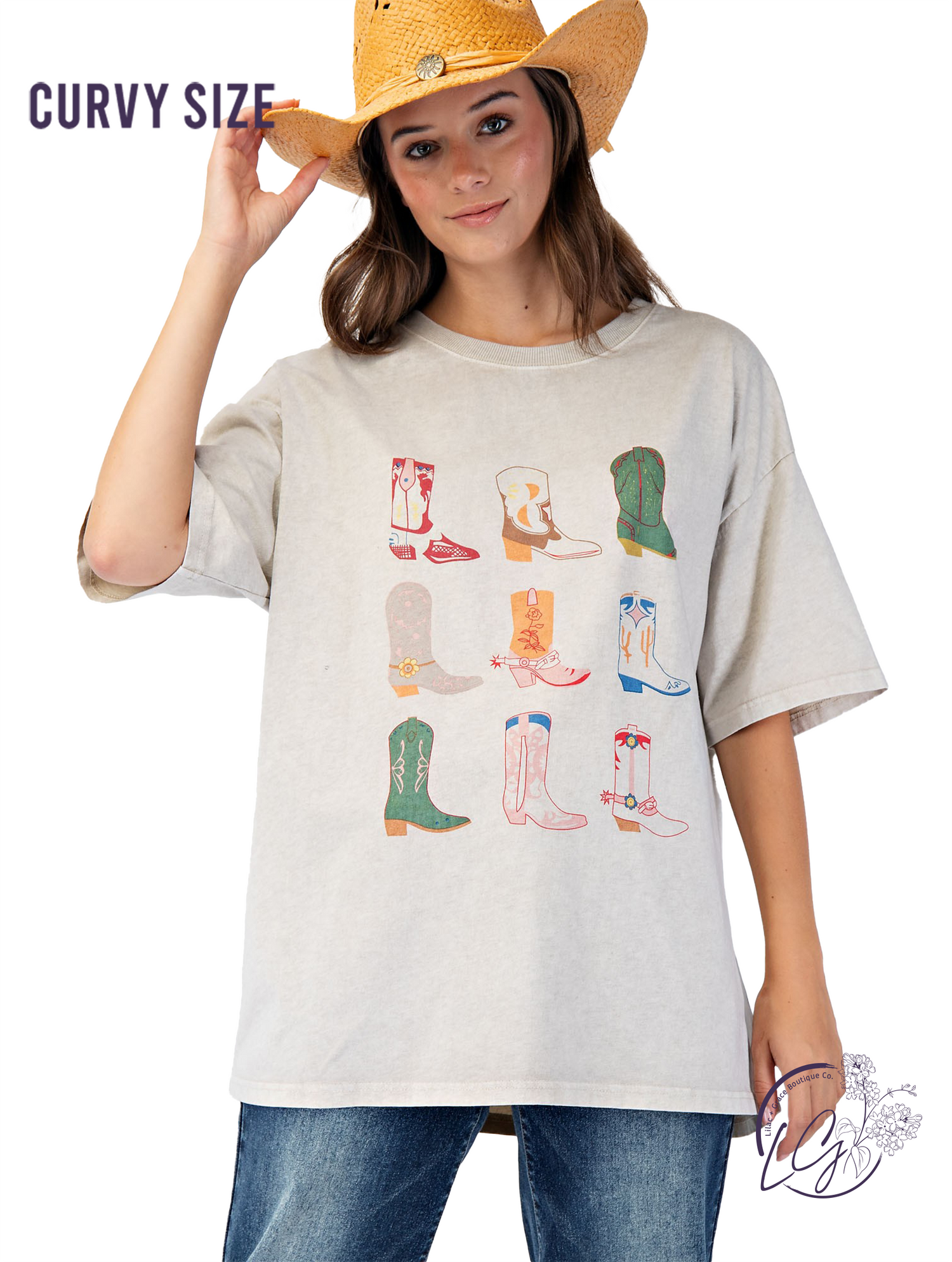 This mineral washed knit top features a bold cowboy boots graphic across the front, adding Western flair to its laid-back style. Designed with wide short sleeves, a boxy silhouette, and a relaxed, loose fit, it’s lightweight and perfect for everyday wear.