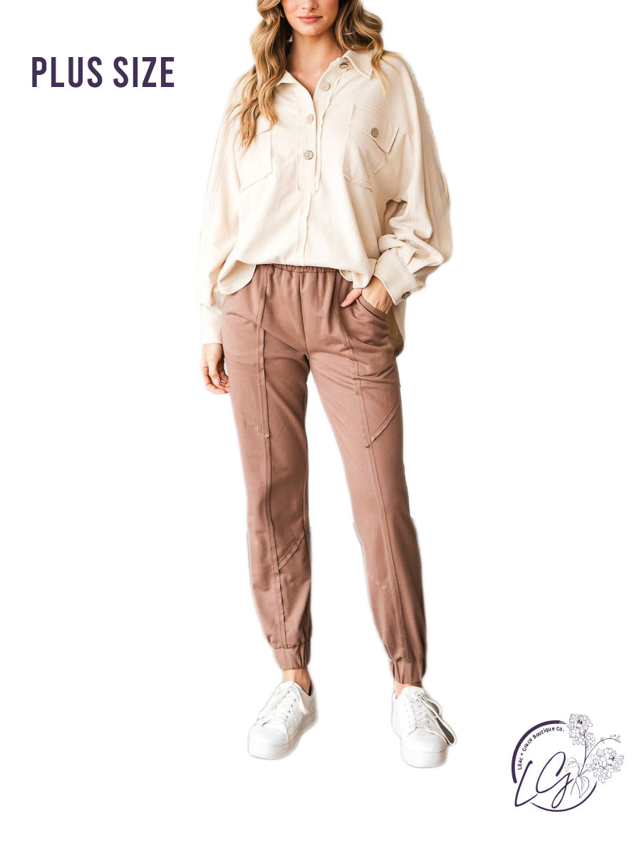Curvy FRENCH TERRY JOGGER PANTS WITH EXPOSED STITCHINGS