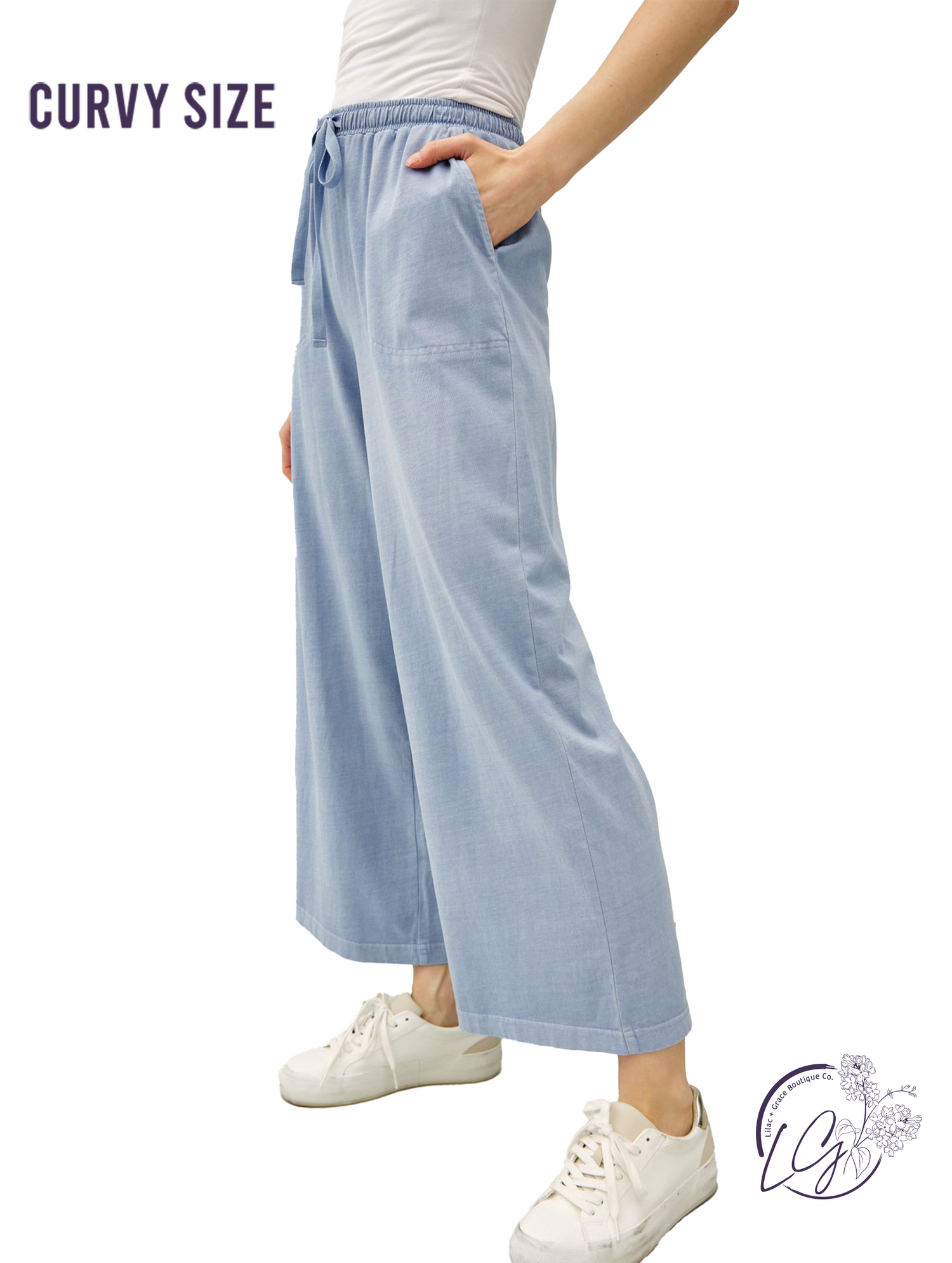 Embrace comfort and style with our Curvy Murmurs In Traffic Pants. These plus-size cotton wide-leg pants feature a stretchy elastic waistband for a perfect fit and handy pockets to keep your essentials close. Perfect for lounging or stepping out, they blend ease and flair effortlessly.