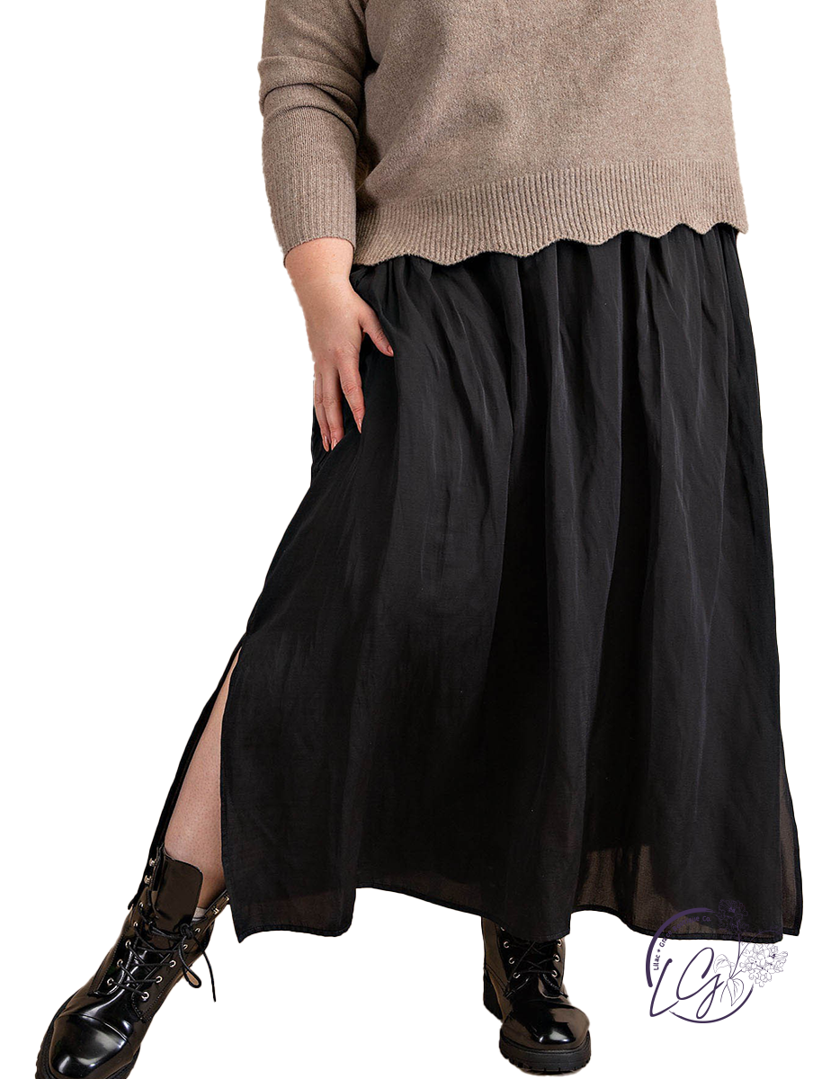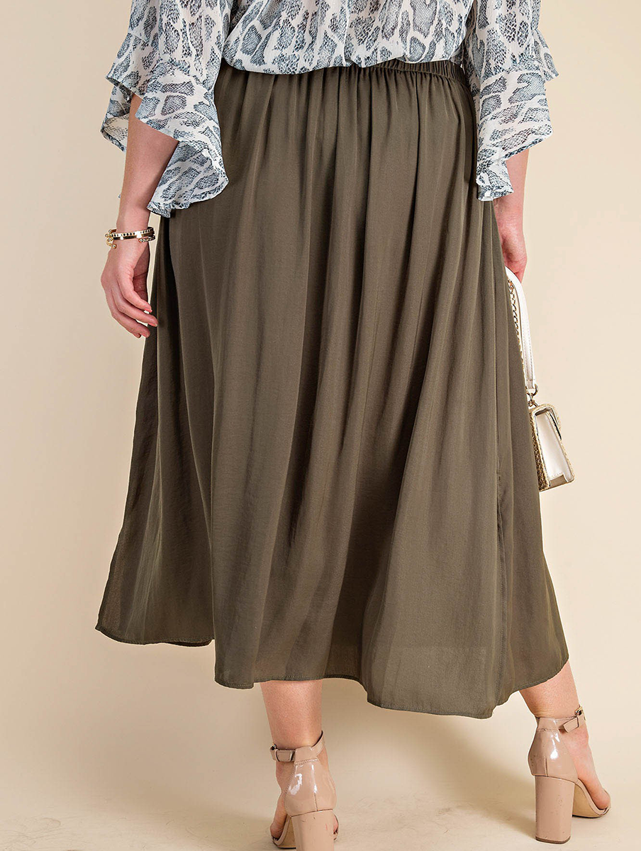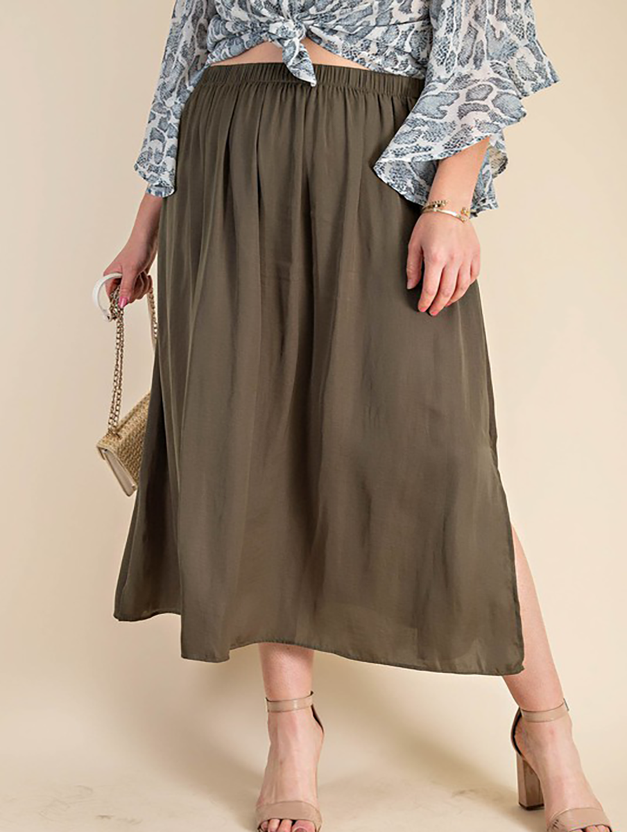 Curvy Deep Side Slit A-Line Skirt with Pockets