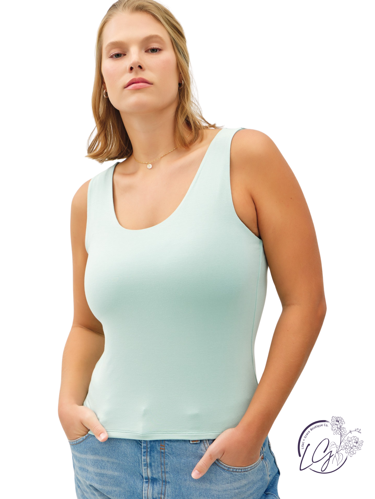 Embrace your curves with the Curvy Under My Skin Tank, designed to hug you in all the right places. Made from soft, stretchy jersey knit with a spandex blend, this sleeveless tank offers a comfy, fitted silhouette that moves with you. Featuring a scoop neckline front and back, plus double lining for extra security, it’s the perfect basic essential for classic, casual style with a playful twist.