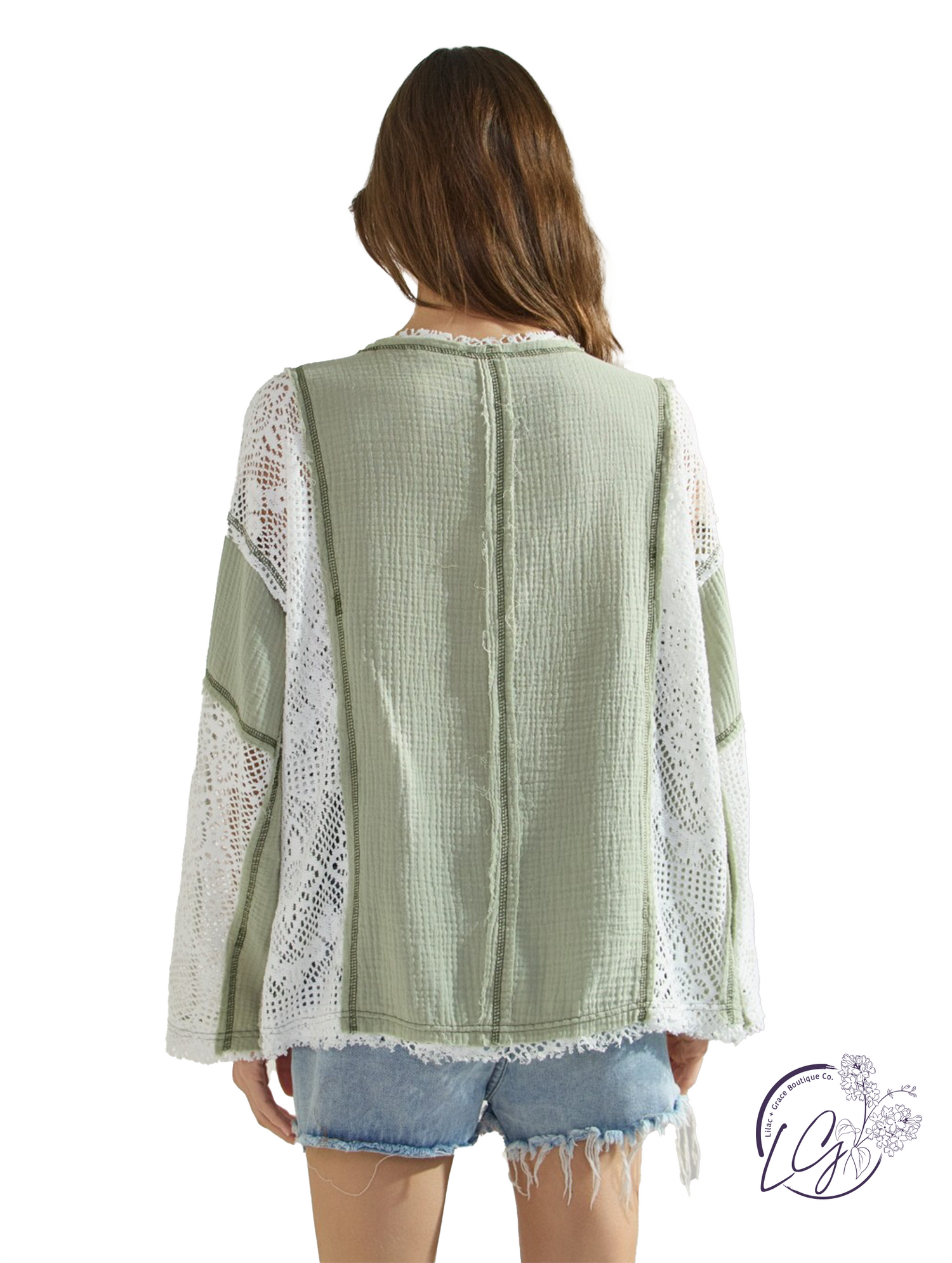 Unleash your bold and daring style with our Curvy Wears Like Air Top! Crafted from soft cotton gauze, this long sleeve top features striking contrast lace detailing. Perfect for adding a touch of adventure to your wardrobe.
