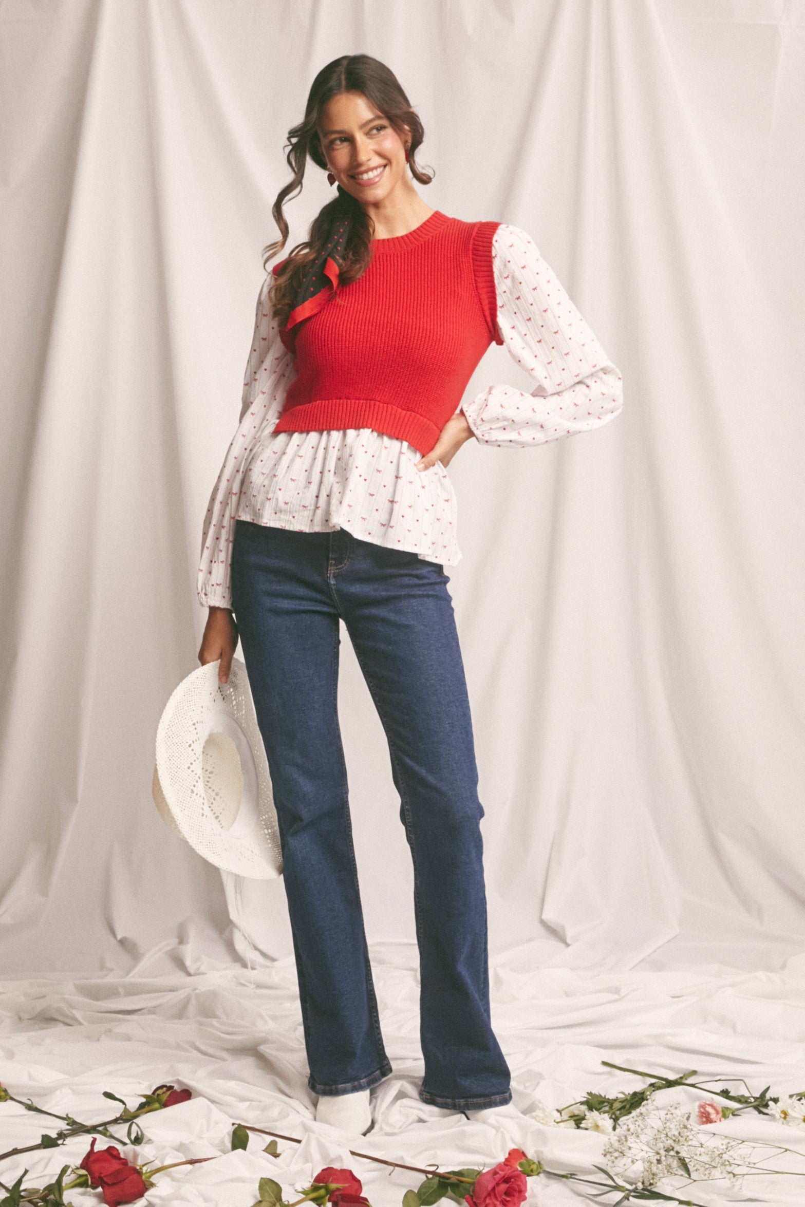 The Darling Bow Layered Blouse is the perfect blend of sweet and stylish. This two-in-one design features a soft blouse with delicate bow details paired seamlessly with a cozy sweater vest overlay, giving you a perfectly layered look without the fuss. Designed for effortless wear, it offers a flattering silhouette with feminine charm that’s easy to dress up or down. Pair it with denim or trousers for a polished yet playful outfit that feels as lovely as it looks.