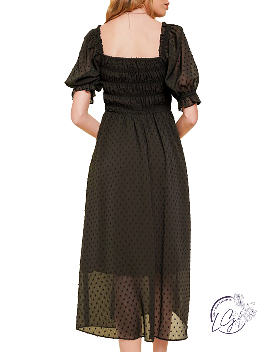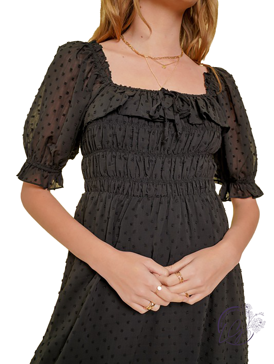 Cupcake Sleeve Ruffle Detail Smocked Back Chiffon Midi Dress