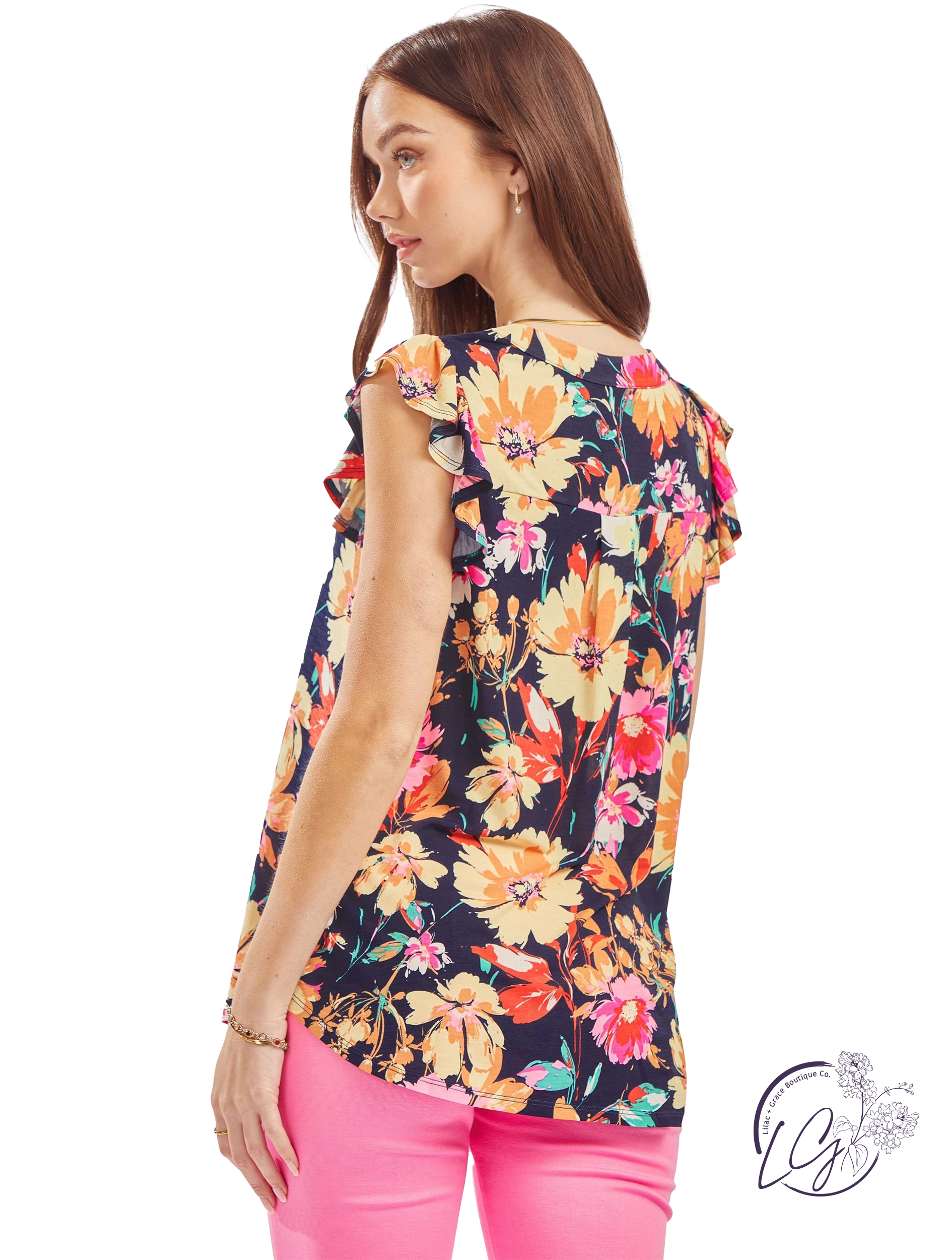 Get ready to fall in love with our Navy Solid Wrinkle Free Top! Featuring a chic China collar and back pleated detail, this Lizzy flutter top adds a touch of elegance to any outfit. The relaxed and stretchy knit material makes it easy to wear, while the flared flutter sleeves add a playful touch. Say goodbye to wrinkles and hello to effortless style!