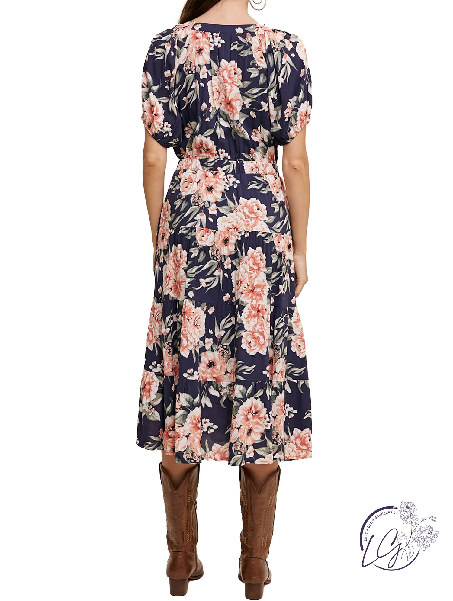 The Floral V-neck Cinched Waist Maxi Dress is a breathtaking ensemble that exudes elegance and charm. Its V-neckline gracefully accentuates the décolletage, adding a touch of allure. The cinched waist creates a flattering silhouette, defining the curves beautifully. Adorned with a delightful floral pattern, this dress brings a touch of nature's beauty to your wardrobe. The flowing maxi length skirt adds a sense of romance and sophistication, making it perfect for both casual and formal occasions.