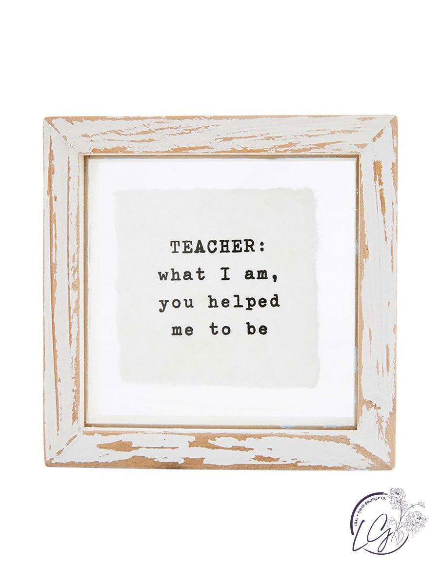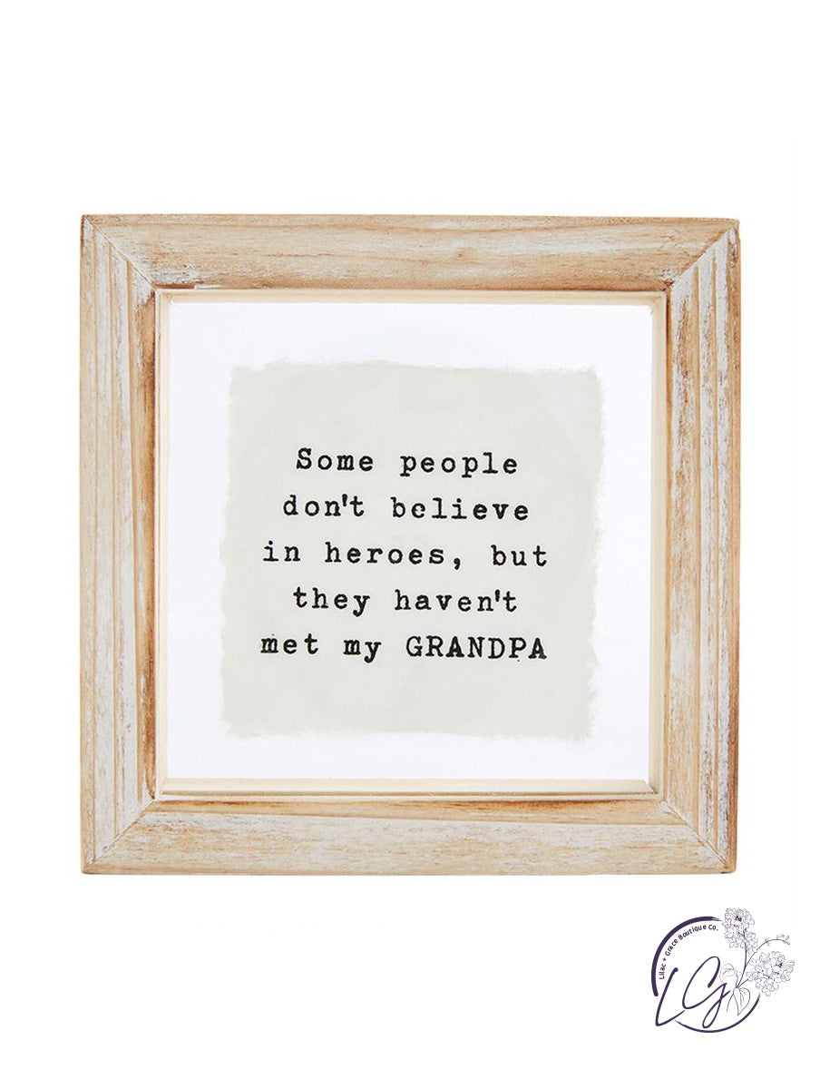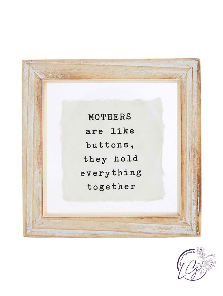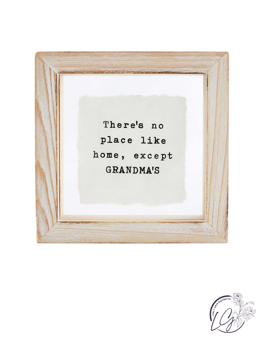 Pressed glass plaque features printed handmade parchment paper and wooden frame.