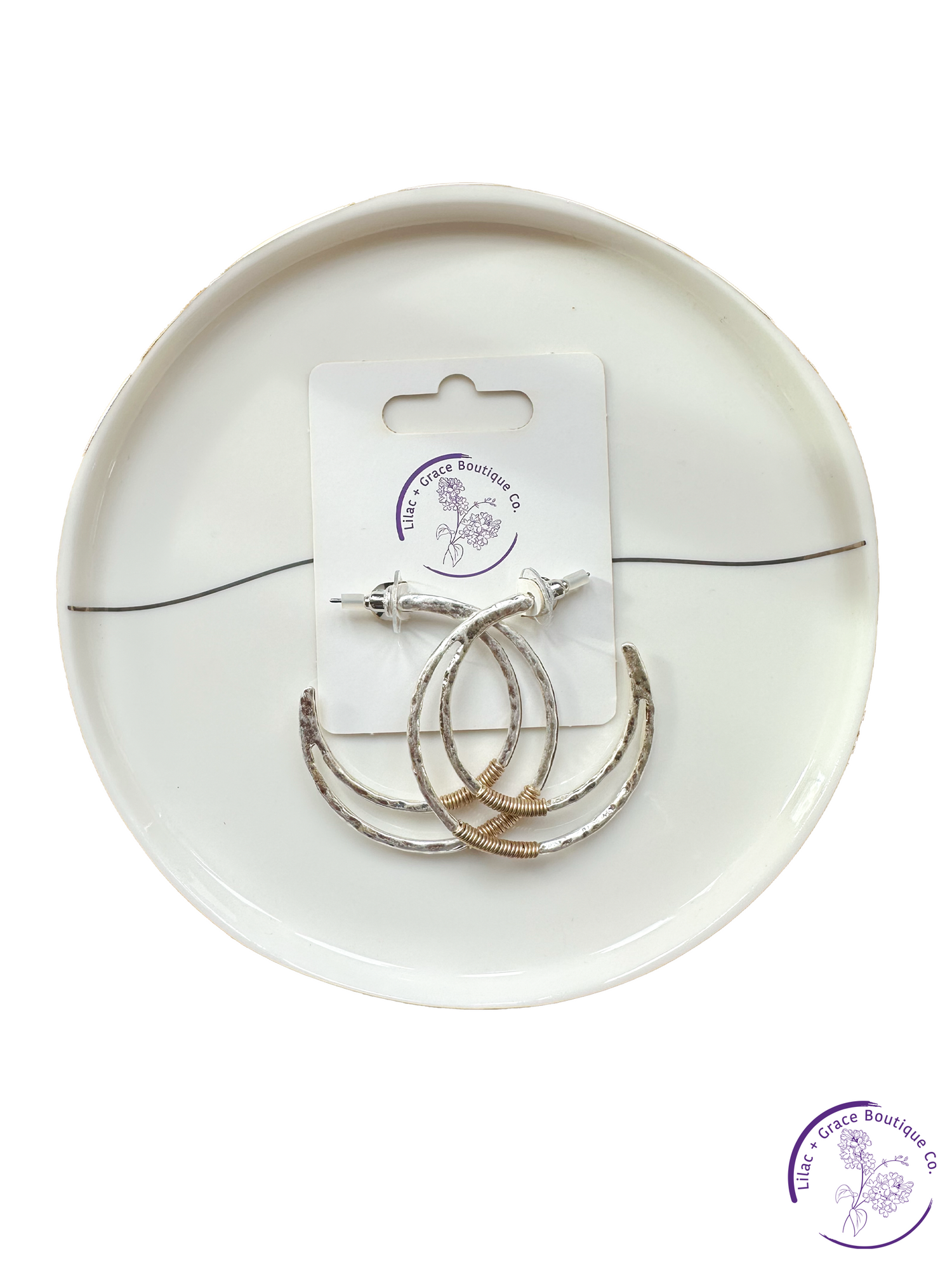Add a touch of elegance to any outfit with our Hammered Silver Half Moon Earrings. The unique hammered design adds a subtle texture and shine to these stunning accessories. Perfect for a night out or everyday wear, these earrings are a must-have for any jewelry lover. Elevate your style with our Half Moon Earrings!