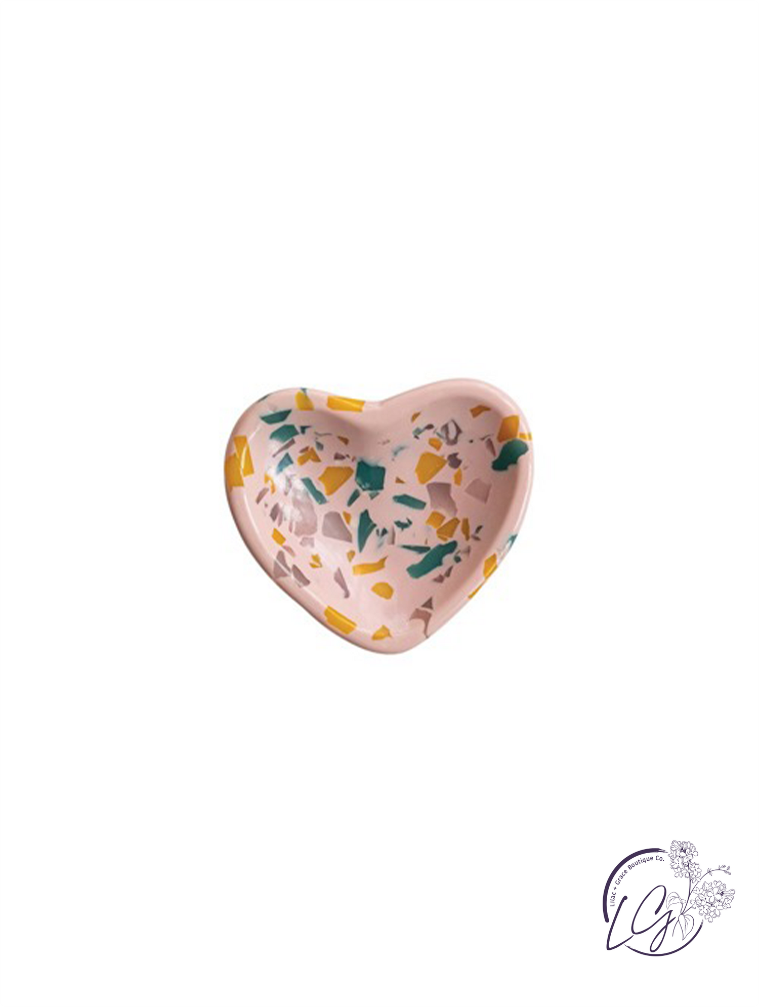Add a touch of whimsy and color to your home decor with this charming heart-shaped resin dish. Measuring 2-1/4"L x 2"W, this versatile piece is perfect for holding small trinkets, jewelry, or simply as a decorative accent on its own. Available in vibrant pink, blue, or purple, you can choose the color that best suits your style. The smooth resin material adds a modern touch to any space, making it a great addition to any room. Whether you keep it for yourself or gift it to a loved one, this heart-shaped dish is sure to bring a smile to anyone's face.