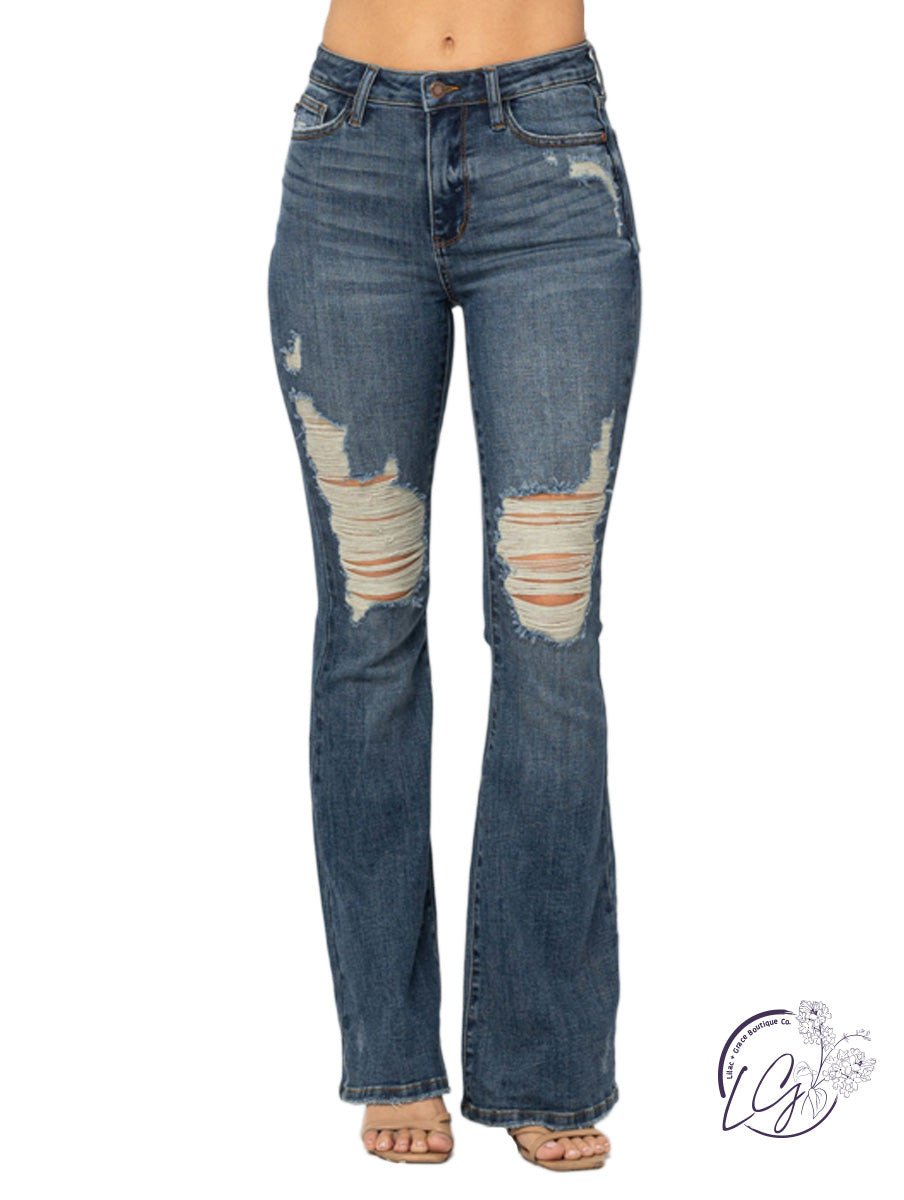 Desiree High-Rise Destroyed Flare By Judy Blue