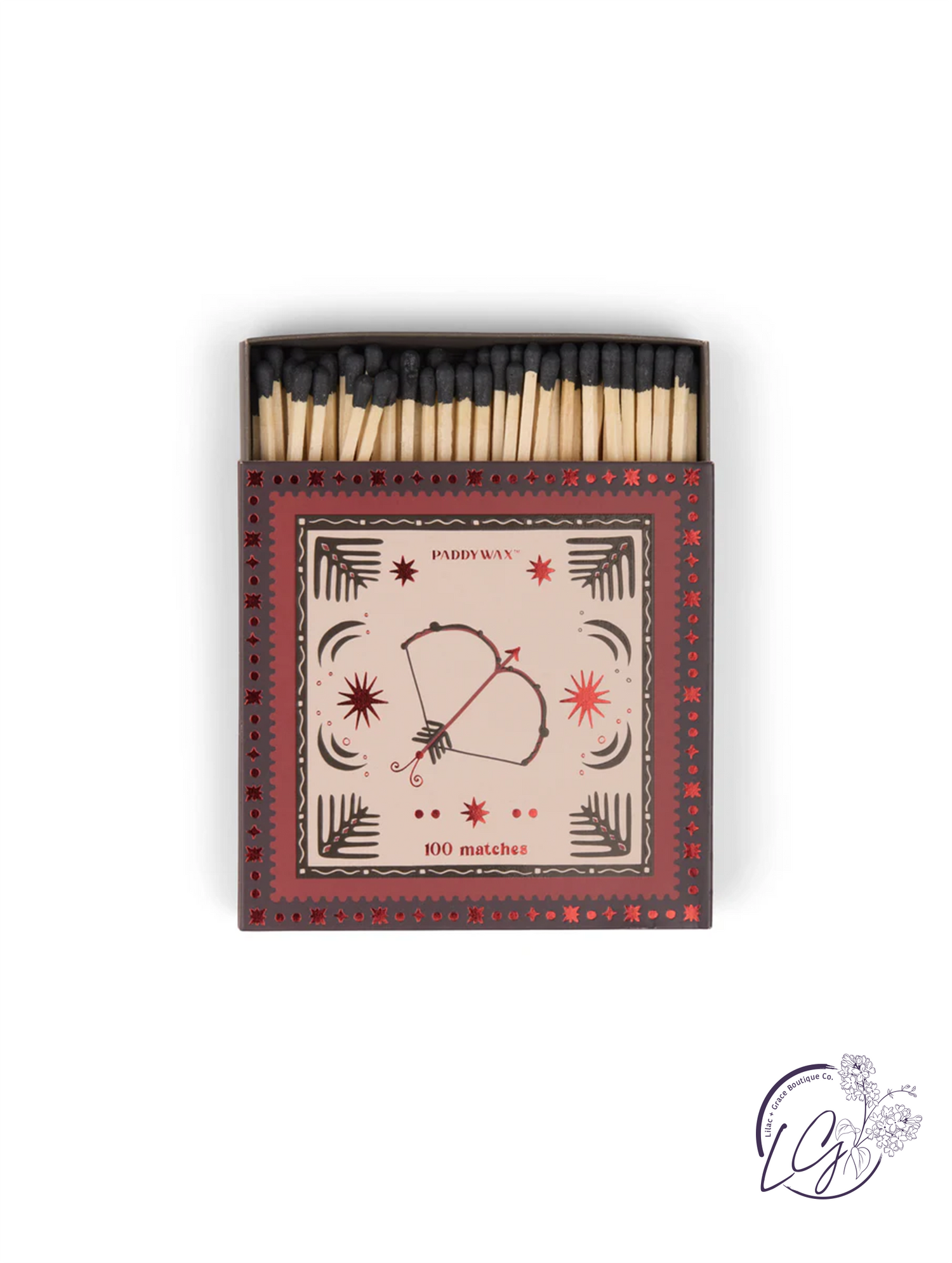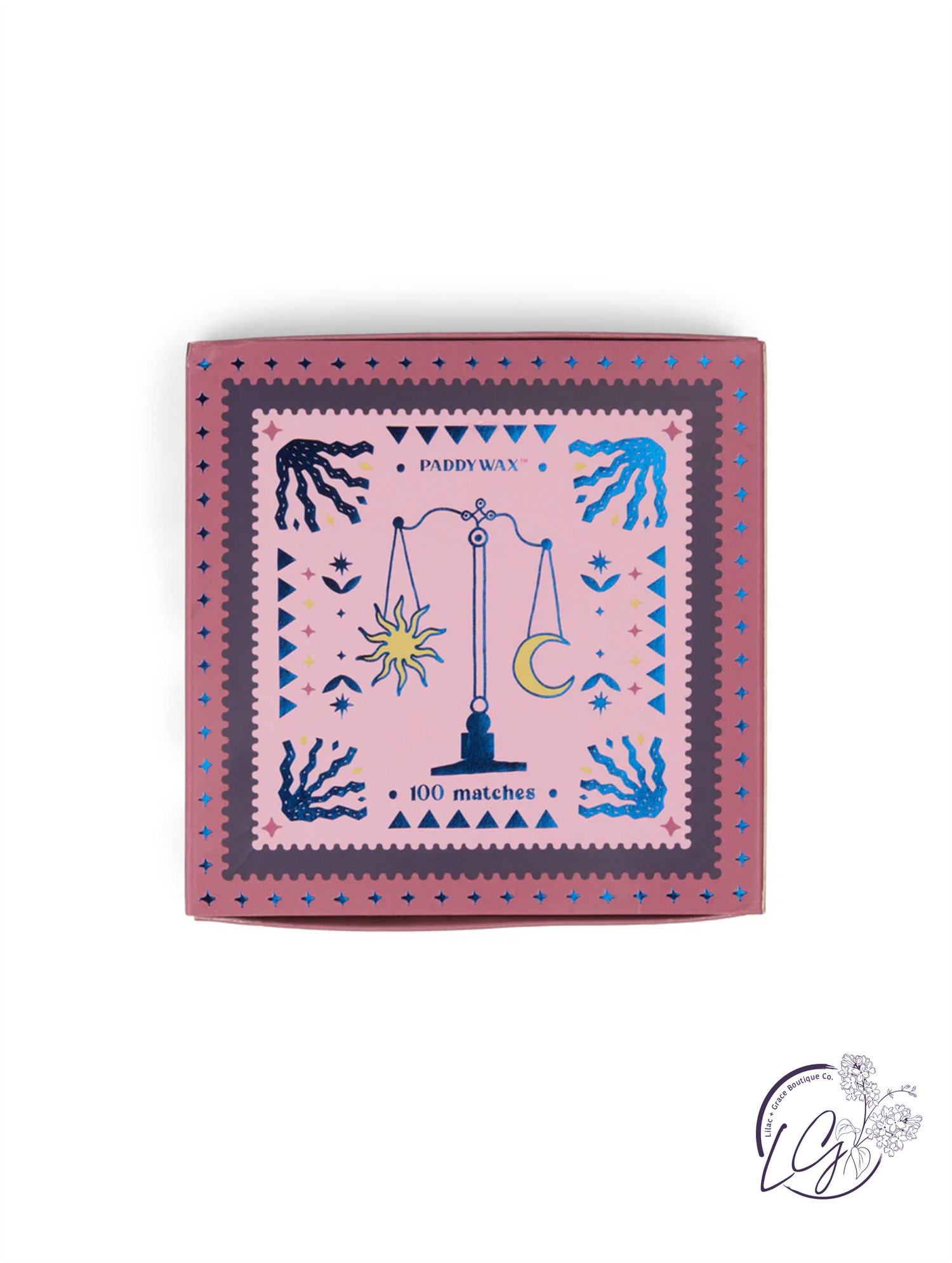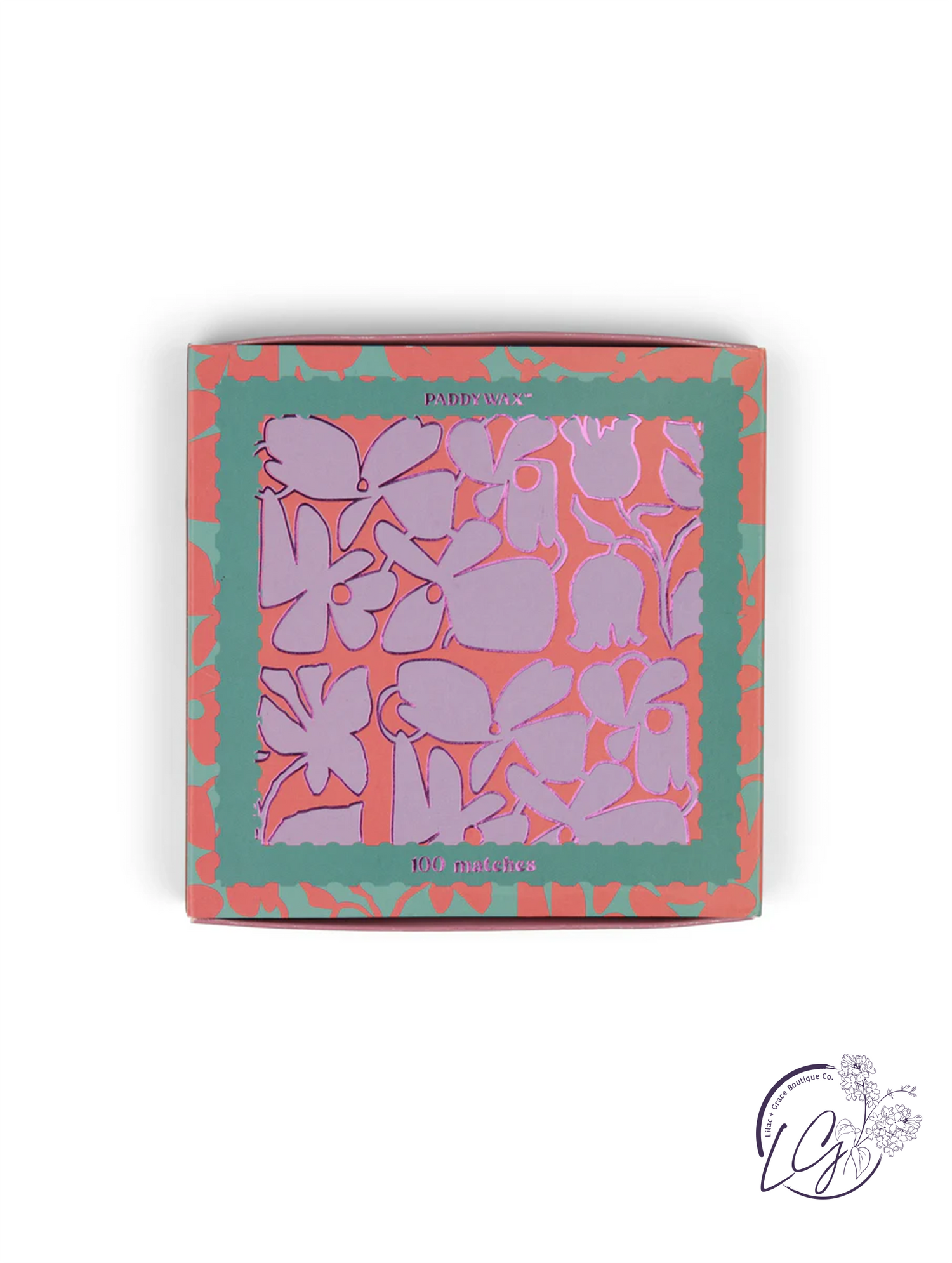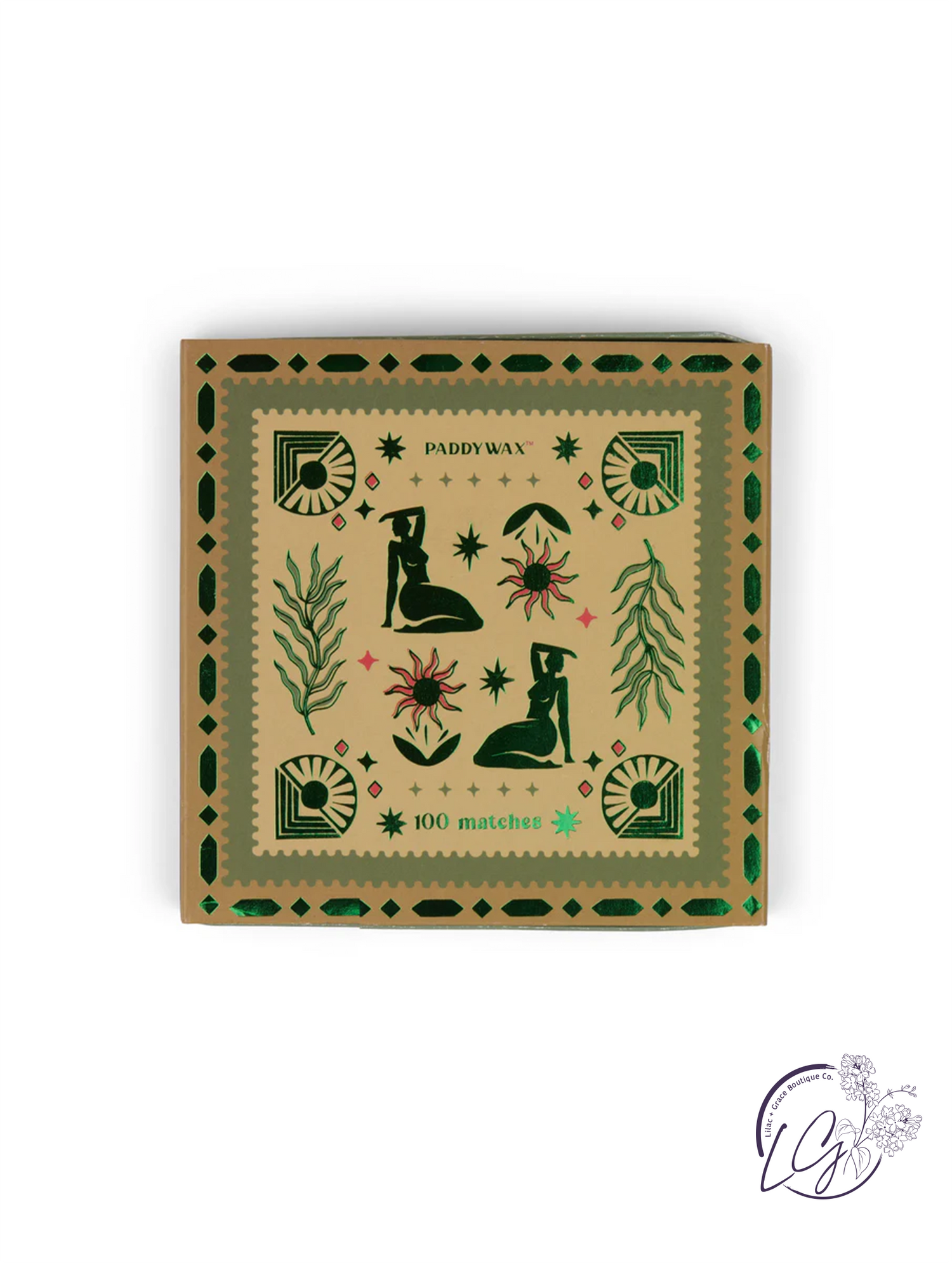 These sets of 100 matches come in a hand illustrated work of art matchbox. Each box features metallic or glossy accents, two strikers, and all 100 match tips are colored to match the design. Jumbo matches are a perfect accessory to gift with any Paddywax candle.