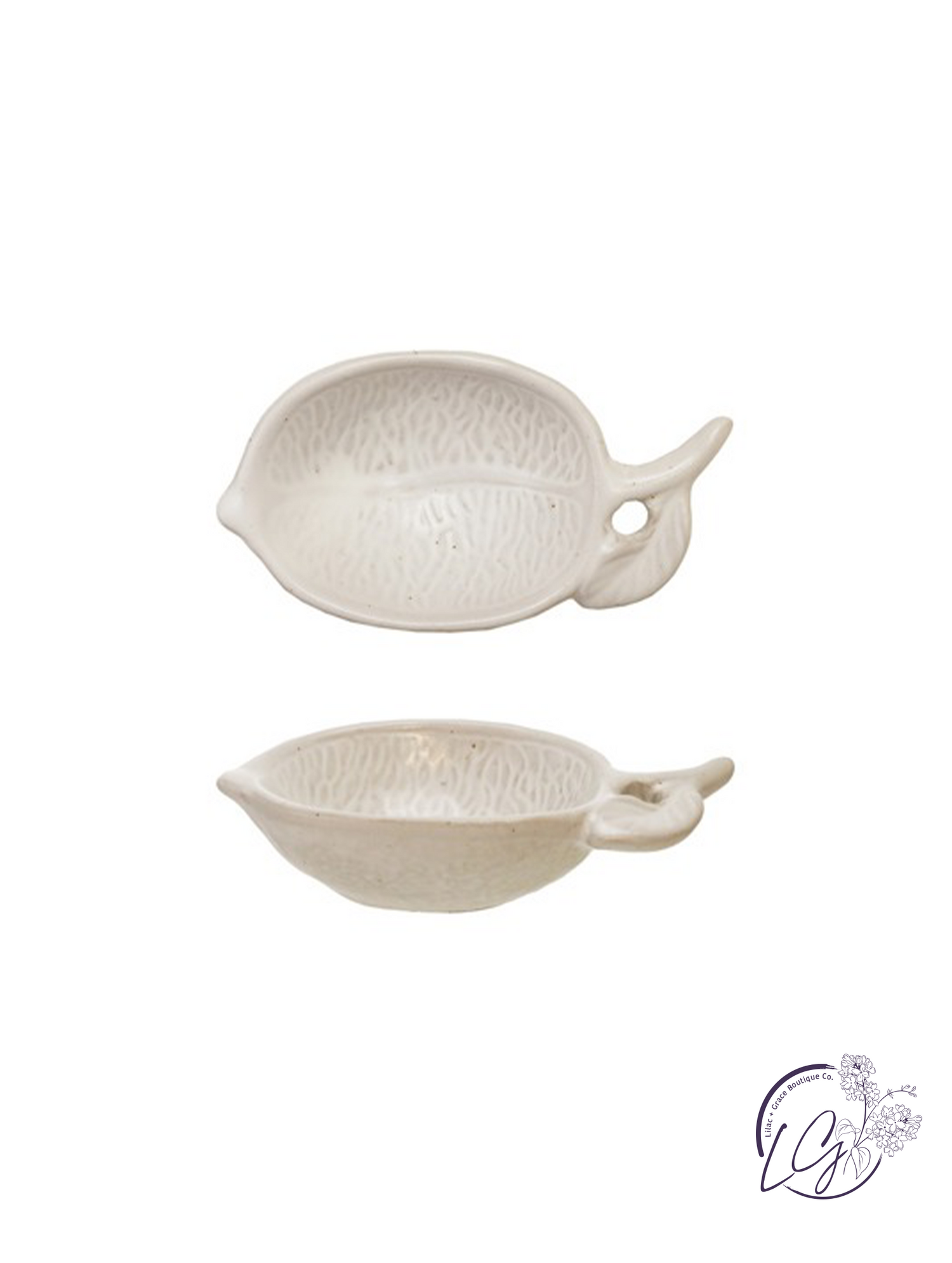 This charming stoneware lemon shaped bowl is not only perfect for serving snacks, dips, or desserts, but also adds a touch of elegance to any table setting. Its compact size of 3-1/2 inches in length and 1-1/2 inches in height makes it ideal for individual servings. The unique shape of the bowl adds a fun and whimsical element to your dining experience. Crafted from durable stoneware, this bowl is both microwave and dishwasher safe for convenient use and cleaning. Bring a burst of citrus-inspired charm to your table with this delightful lemon shaped bowl.