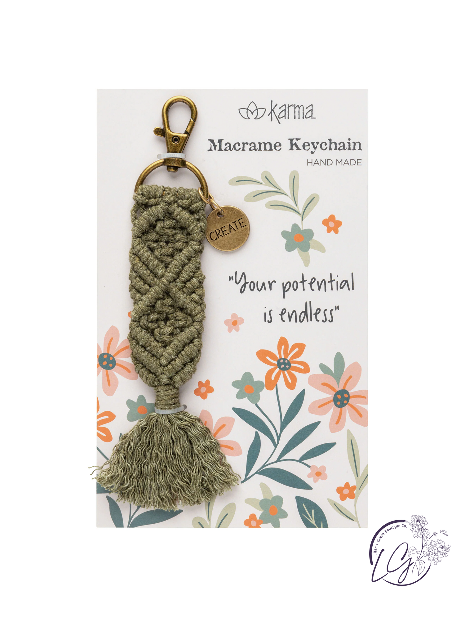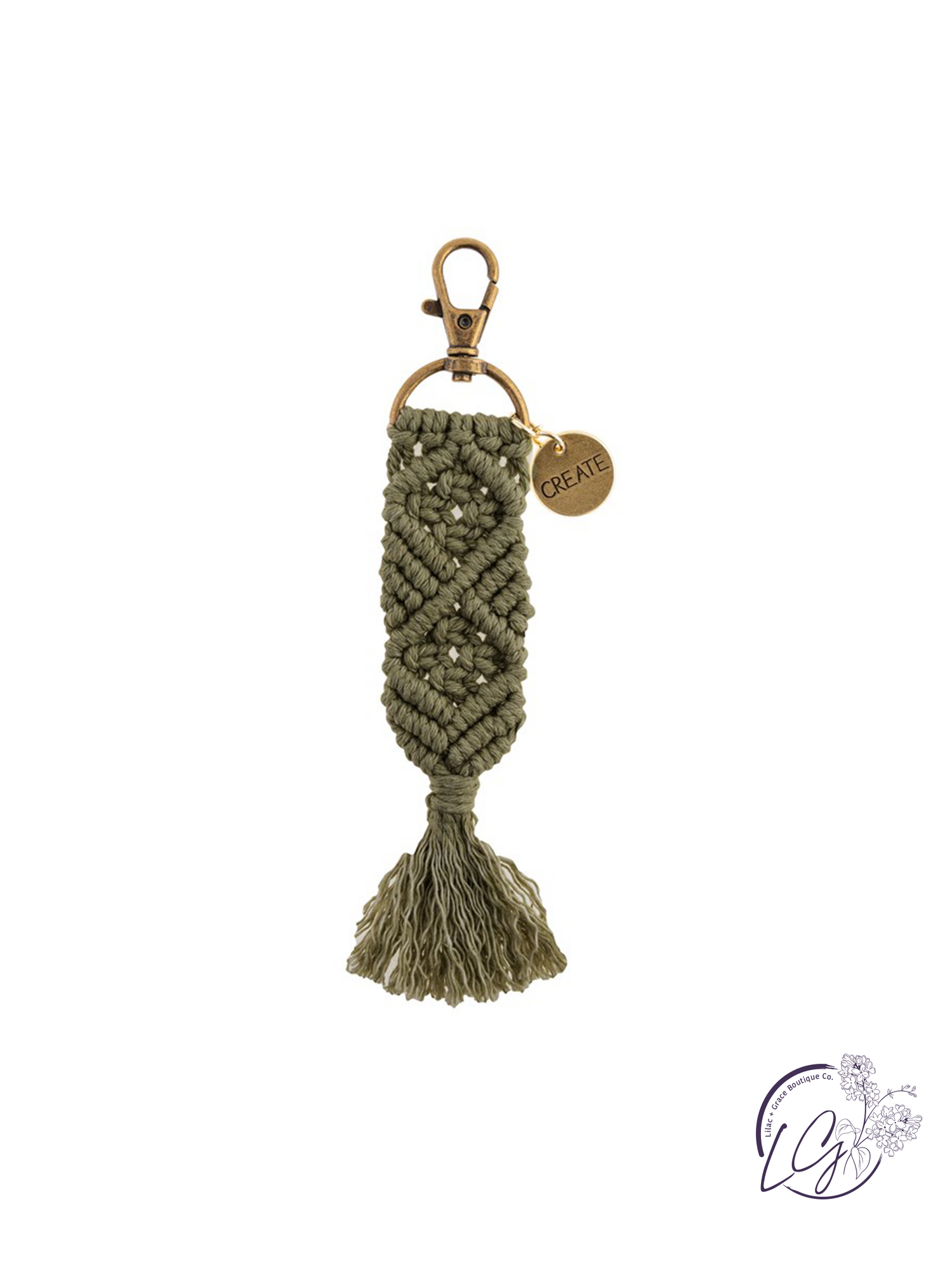 Personalize wallets, keys, or your favorite bag with one of our hand crafted macrame keychains. Each one comes with a unique gold metal word charm and is a wonderful gift option for mothers, sisters, friends, or anyone special in your life. Add some boho into your life with charming accessory!