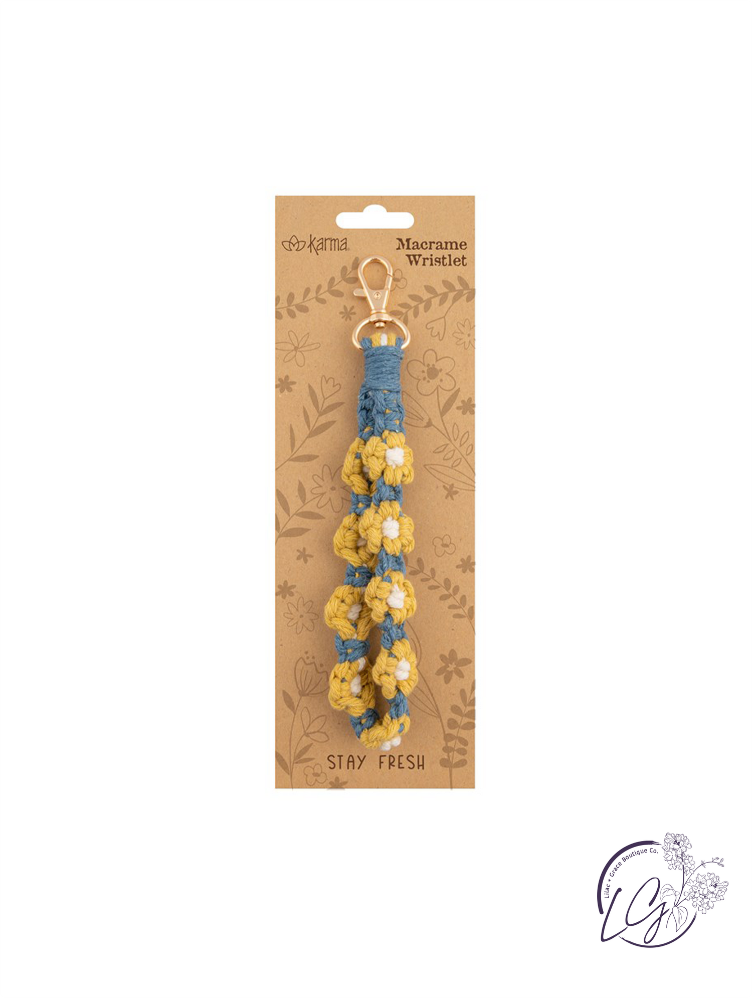 Upgrade your everyday essentials with this charming macramé wristlet, perfect for adding a touch of bohemian flair to your style. Hand made from soft cotton and natural materials, this wristlet not only looks adorable but also promotes sustainability. Whether you attach it to your keychain or your wallet, this versatile accessory is sure to make a statement wherever you go. Say goodbye to boring accessories and hello to effortless style with this Macramé Wristlet.