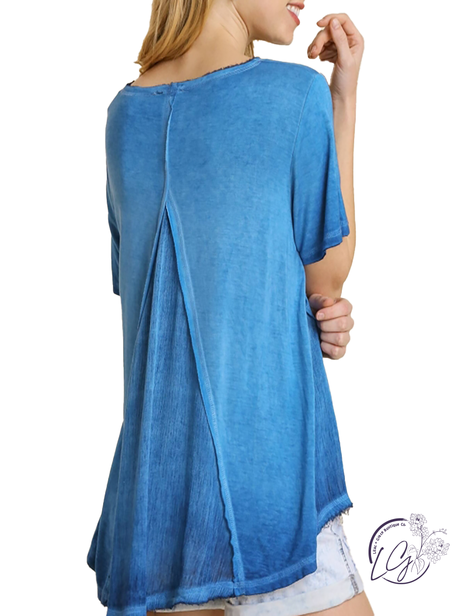 Mineral Washed Round Neck Short Sleeve Top with Raw Hem