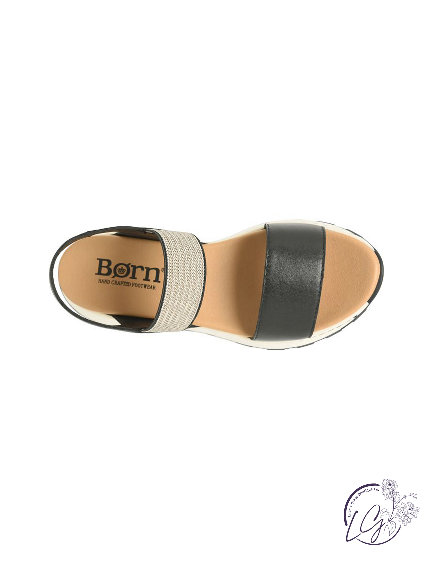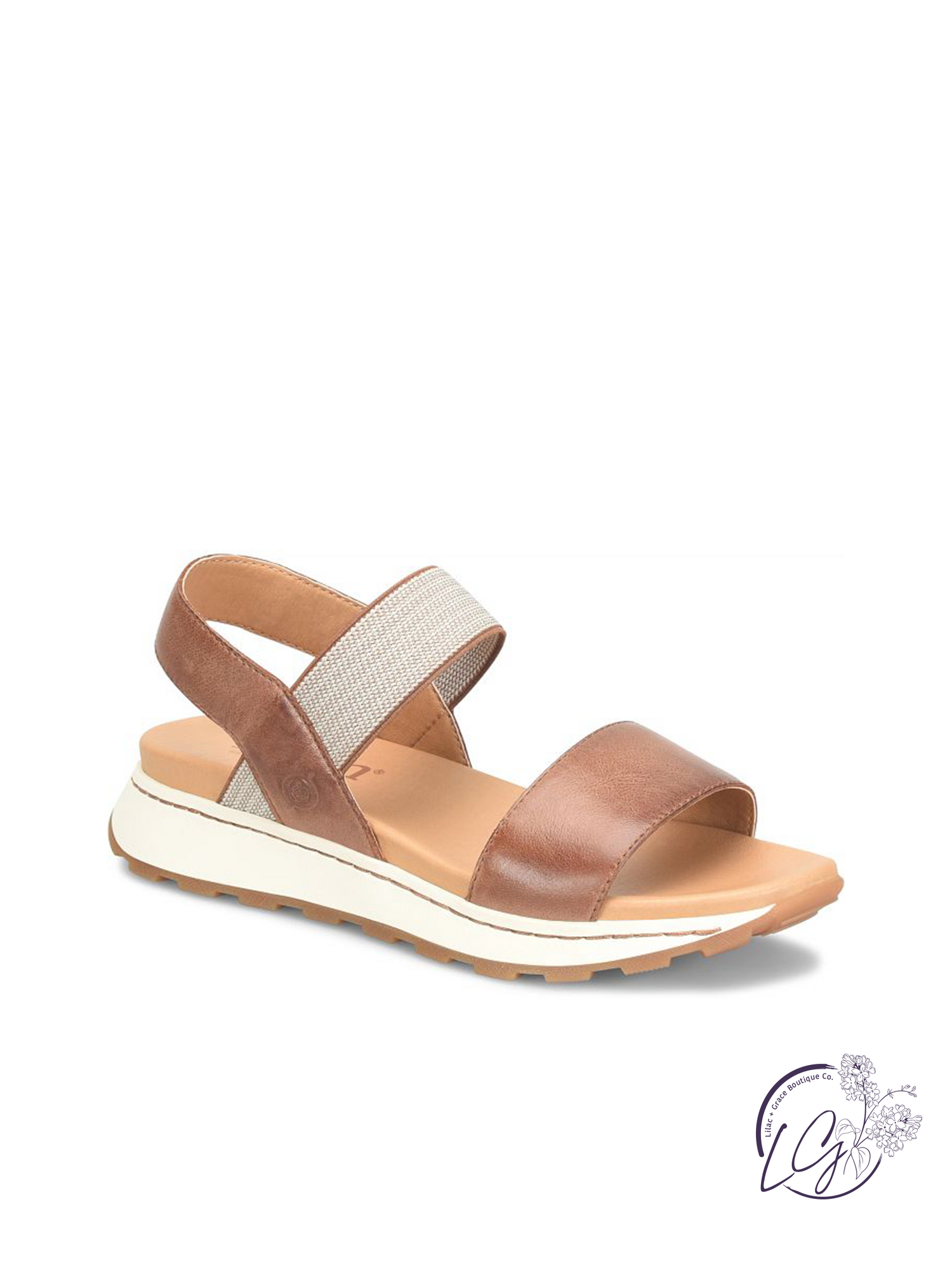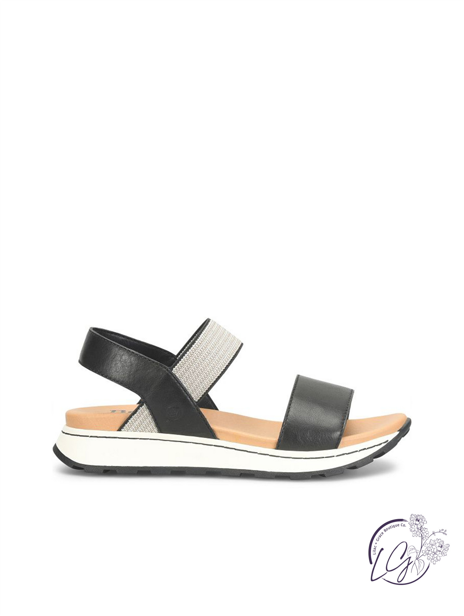 Our Mimi sandal combines signature Børn leathers with colorblocked stretch for the ideal day to dinner vacation-ready sandal.