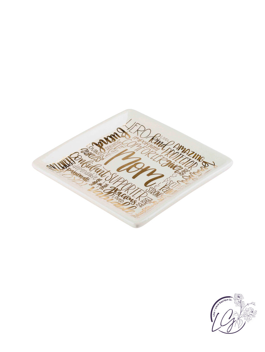 Let your mom know how much she means to you with this collage of inspiring truths about motherhood! It is great for Mother's Day, but can serve as a "just because" gift too! The neutral design will allow it to fit well in any space. Love on your mama and let this trinket tray hold all her jewelry, spare change, keys and more!
