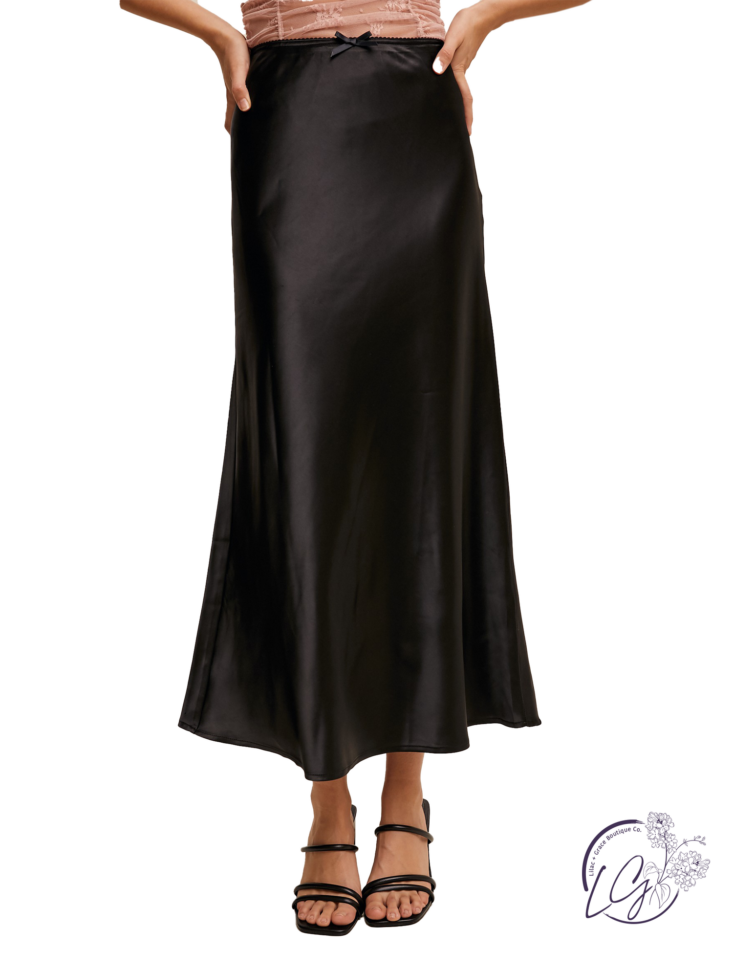 Effortlessly chic and timeless, this satin midi slip skirt exudes elegance with every step. Its smooth satin finish catches the light beautifully, while delicate details add a touch of charm. Whether styled for day or night, this piece is a must-have for refined, versatile fashion.