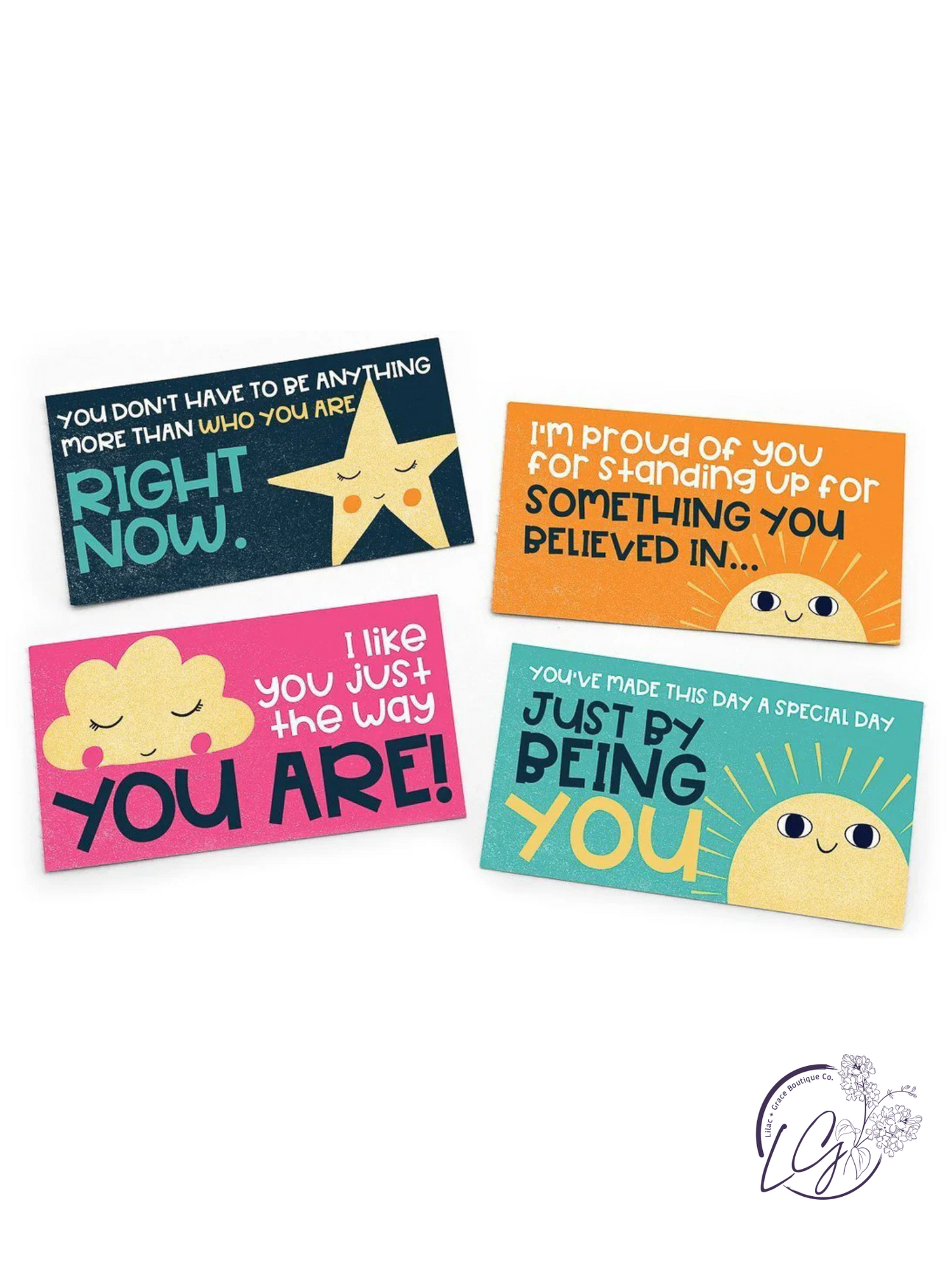 Use these cards to motivate, inspire and uplift. Pack one in a lunch, or hand out wherever you want to spread a little kindness. These cards are made to tear and share.