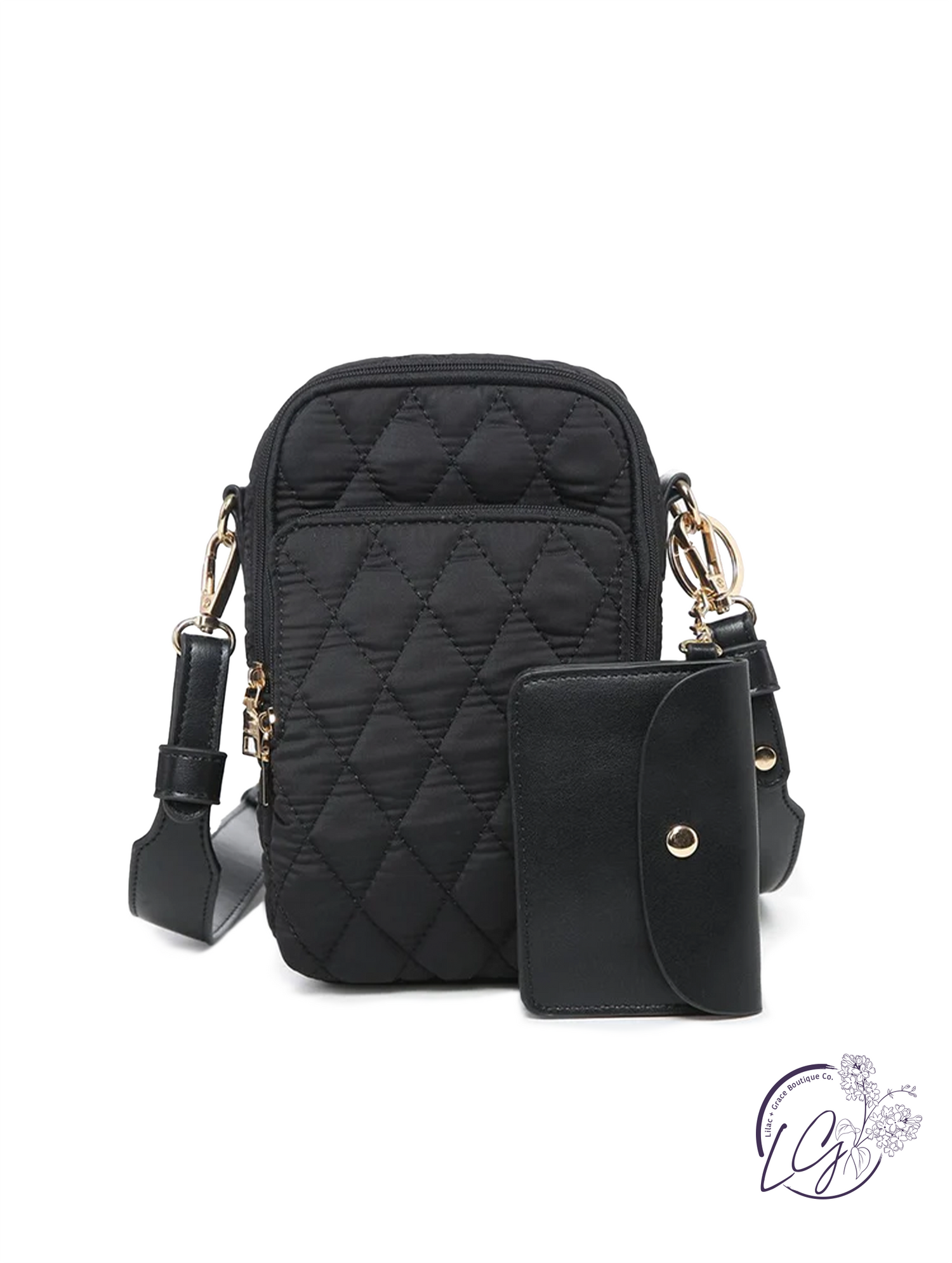 Introducing Parker, your ultimate travel companion crafted for style and functionality, now available in a chic quilted version perfect for the upcoming season. Boasting multiple zippered compartments, Parker ensures ample space to keep your essentials organized during your travels. The detachable snap pouch adds versatility to the design, allowing you to customize your storage options effortlessly. Complete with an adjustable crossbody strap, Parker offers comfortable wear wherever your adventures take you. Crafted from vegan leather, Parker represents a sustainable and stylish accessory choice. With dimensions measuring 5"H x 3"D, Parker combines compactness with practicality, making it the perfect companion for your journeys.