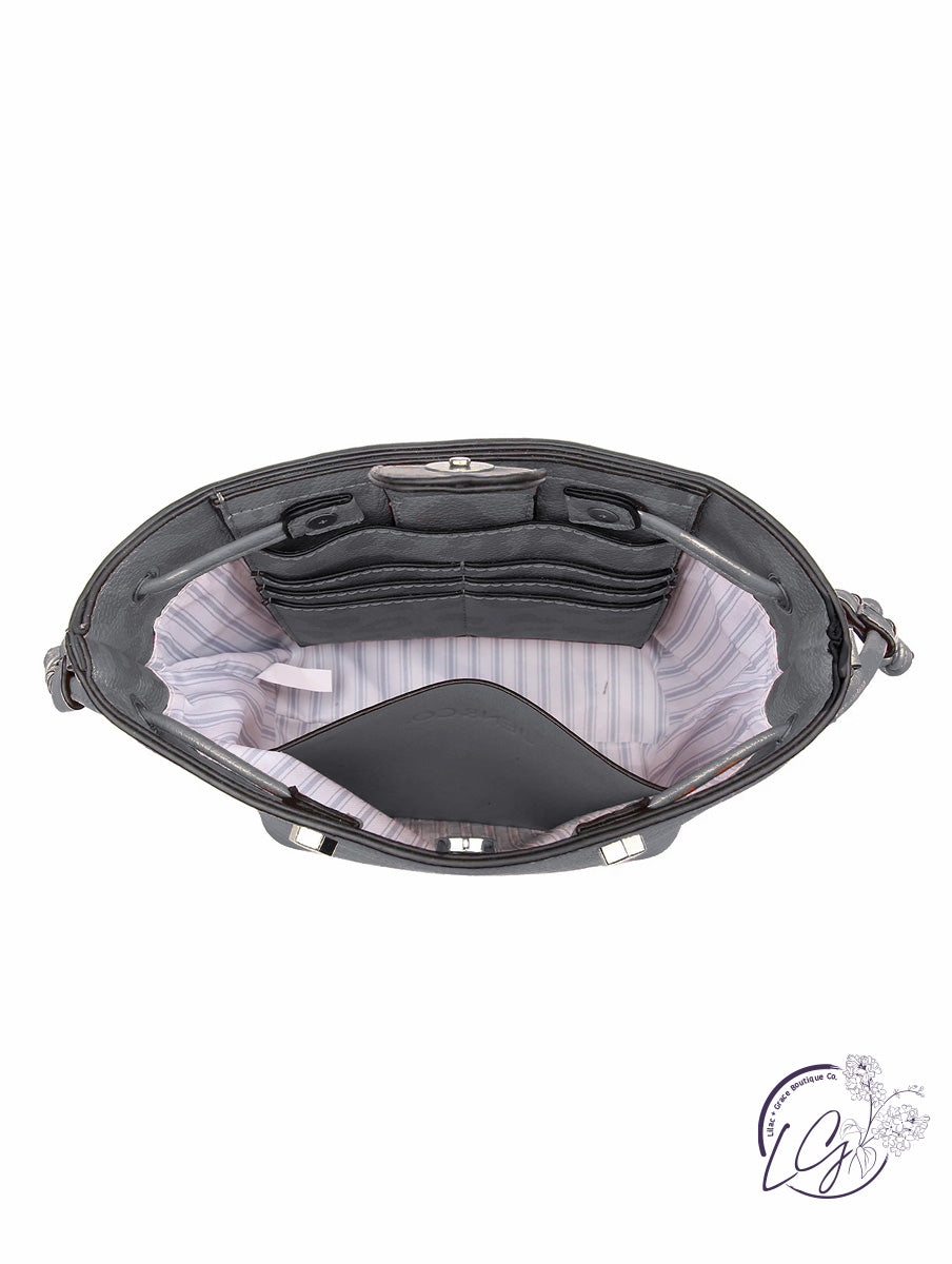Rain is available in a variety of colors. Features card slots and a slip pocket inside. Use the snap closure and pull the side drawstrings to keep your items secure! Includes an adjustable/detachable strap. Dimensions: 8"L x 8"H x 4"D