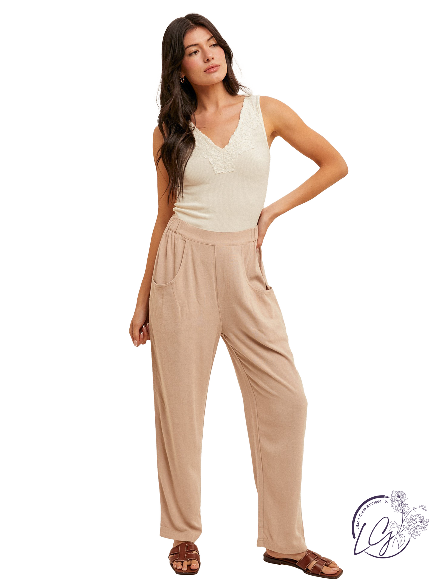 Roomy through the hip and thigh, these snow-washed barrel pants taper gently to the ankle for a modern, curved silhouette. The soft, washed cotton twill feels broken-in from day one, while a high rise, button-zip fly, and adjustable back tabs keep the fit secure. Finished with deep slash pockets and clean back patch pockets, they pair easily with cropped knits or tucked tees for laid-back edge.
