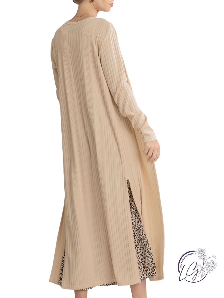 Long Sleeve Open Front Knitted Long Cardigan with Side Slits