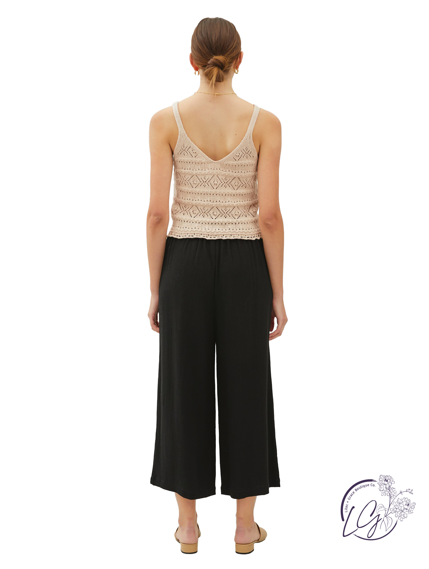 Experience the ultimate comfort and style with our Sunlit Stroll Trousers! Made from flowy, soft linen, these trousers feature pleating and a wide leg design for a chic look. With an elastic waist, convenient pockets, and a crop length, these pants are perfect for any occasion. Embrace the versatility and comfort of these must-have trousers now!