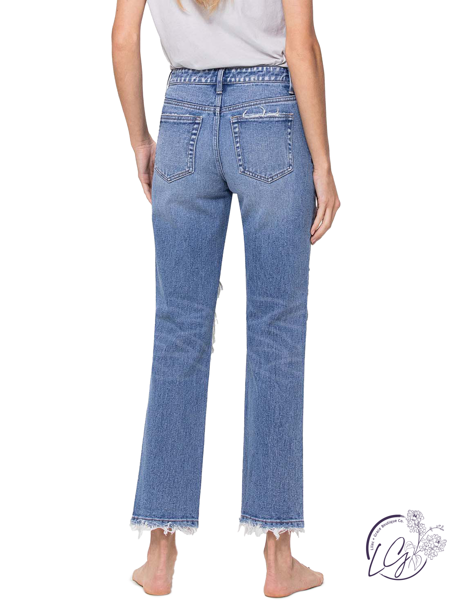 Introducing the Tallulah Mid-Rise Crop Straight Jeans – perfect for any occasion! Made with non-stretch denim, they provide a comfortable mid-rise waist and feature trendy distressed details and raw hem for a unique touch. With a cropped length and straight leg fit, these jeans are a versatile addition to any wardrobe. (Hate boring jeans? These are for you!)