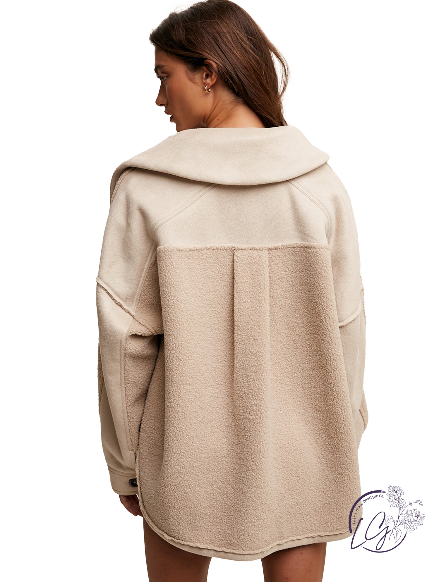 Transform your winter wardrobe with our Teddy & Suede Button Down Jacket. Stay cozy and stylish with its shawl collar, clean curved hem, and patch pockets. The luxurious teddy and suede fabric add a touch of elegance, while the button down closure and button cuffs provide a snug fit.