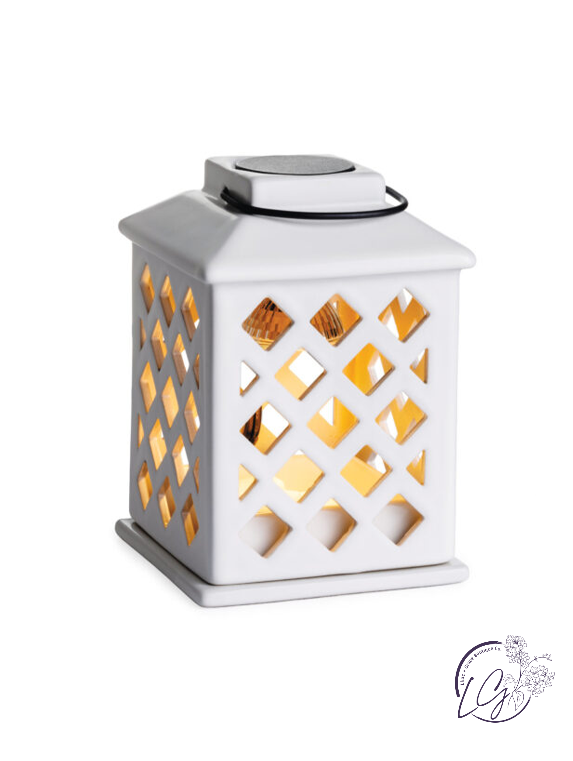 - DESIGN: Add beautiful fragrance to your room with the Shutter Lantern Canopy Illumination Warmer. The stunning lantern features a shutter motif and rustic rope handle. A halogen bulb warms wax melts in the warming dish from the top down releasing fragrance into your home.