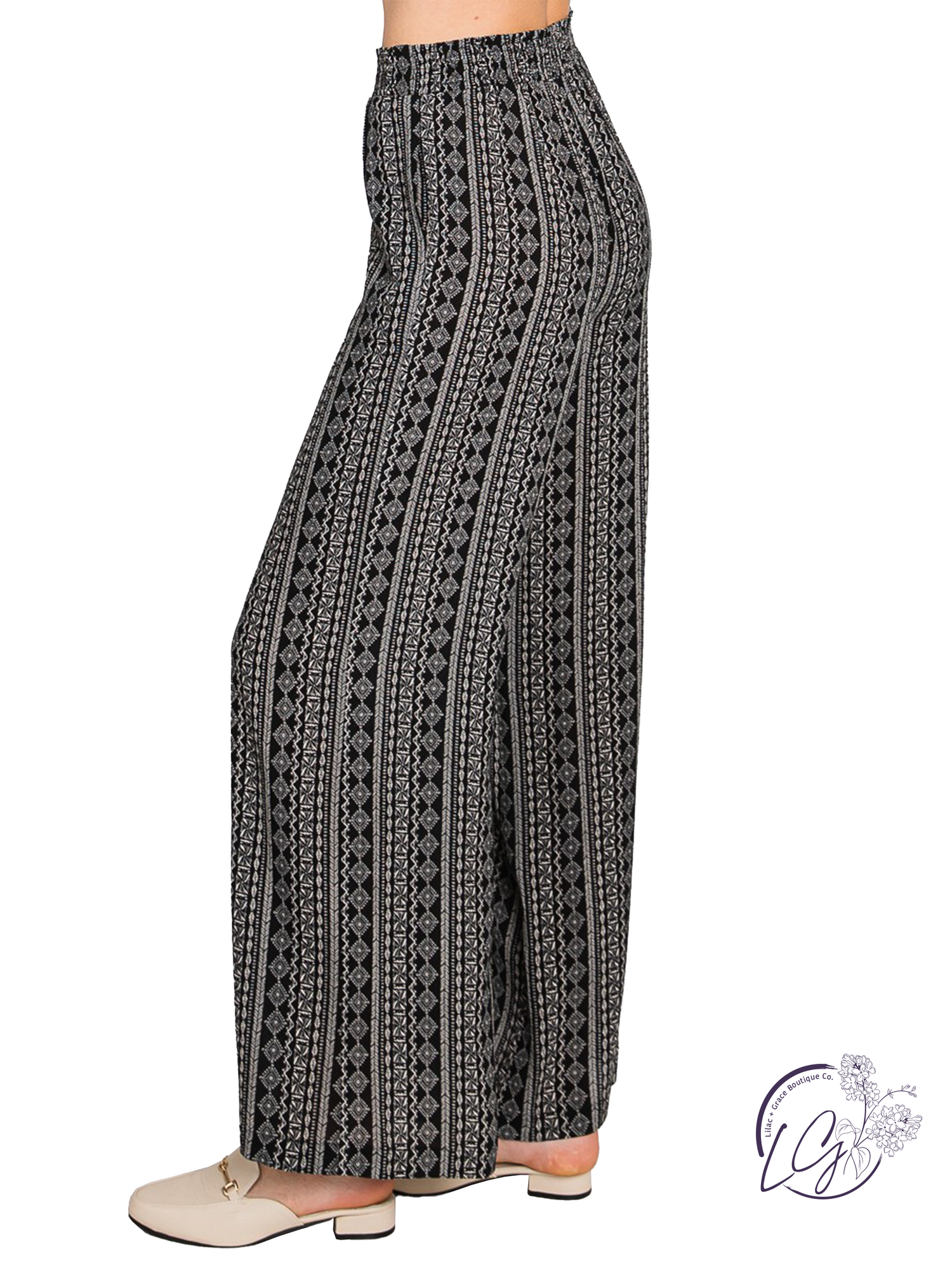 Experience ultimate comfort and style with our Until Someday Smocked Waist Pants! The smocked waistband ensures a perfect fit while the fun pattern adds a touch of personality. With a wide leg design, you'll never want to take these pants off! Don't wait, treat yourself today!