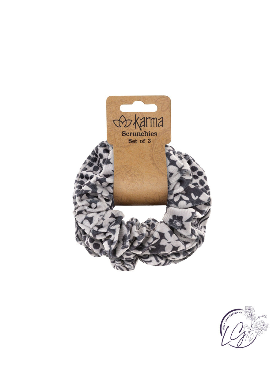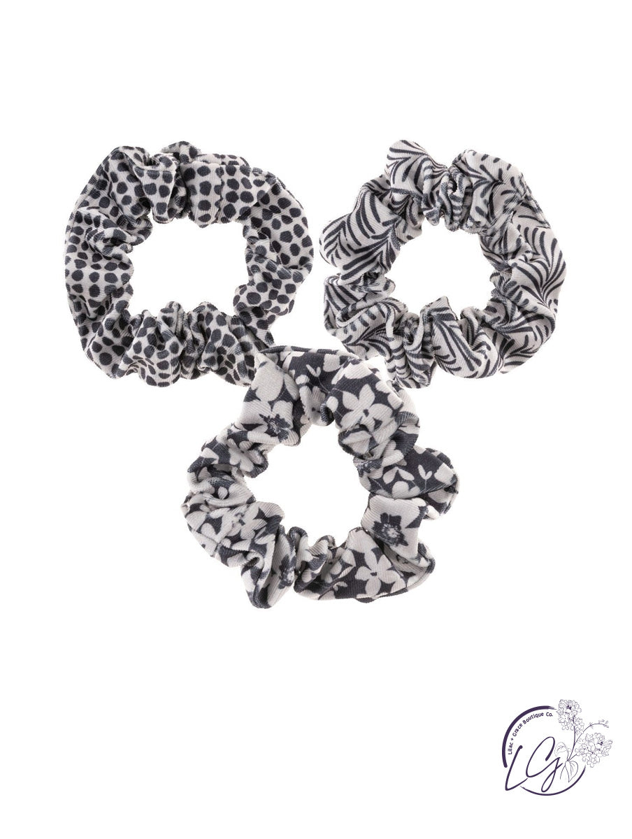 These scrunchies in this classic set of 3 are a must-have hair accessory! Each set comes with a variety of complementary colors perfect for any look. Wear it around your wrist or in your hair for a dual purpose fashion statement.