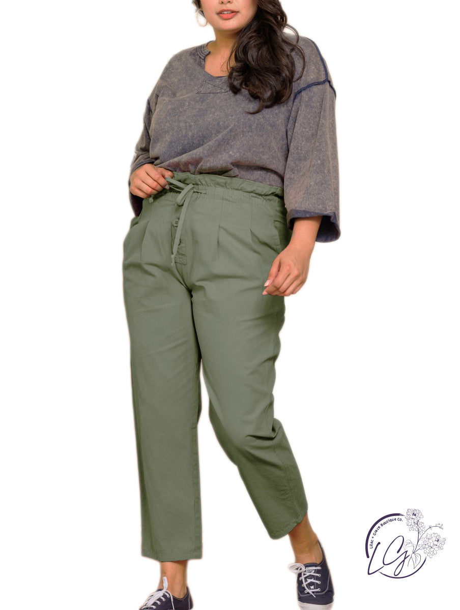Washed solid, pleated detailed trousers with button down and drawstring & elastic waist.
