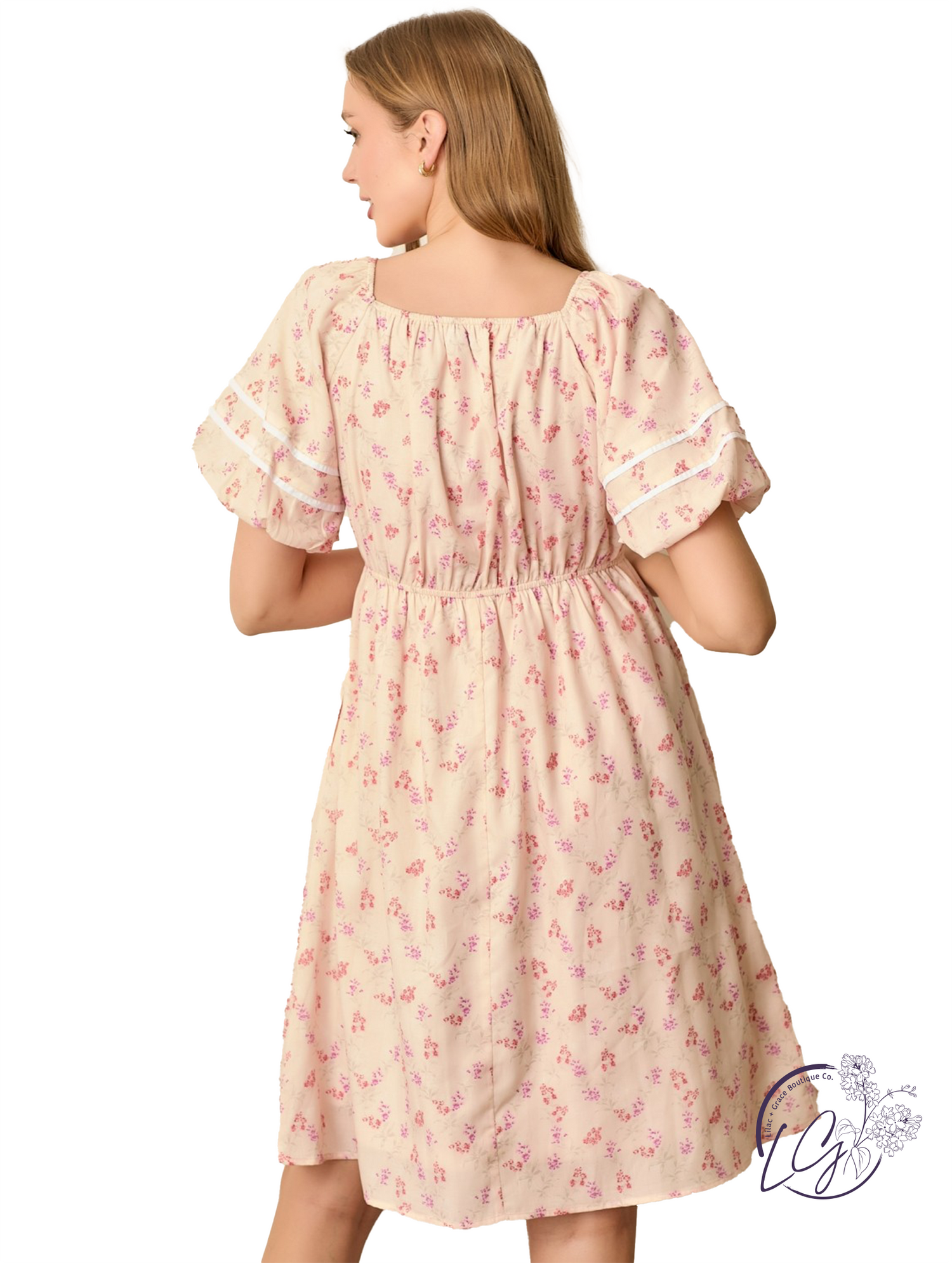 This floral printed mini dress features puff sleeves and a gently flared silhouette for a playful, feminine shape. Functional side pockets add a touch of everyday ease, while the lightweight fabric keeps it breezy and comfortable. Pair with sandals or sneakers for a casual look that feels fresh and fun.