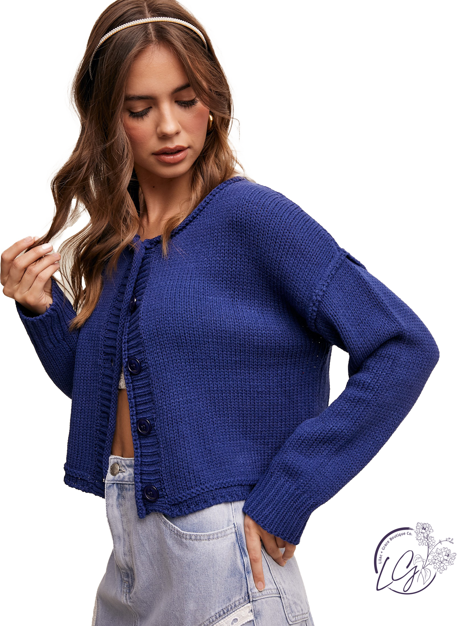 Cozy up in our Winter Haven Button Down Cardigan! This knit beauty features a round neck with buttons, drop shoulders, and long sleeves. Ribbed details on the plackets and cuffs add extra comfort and style. Layer over any outfit for a warm and stylish look.