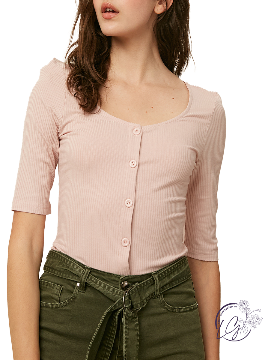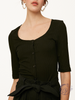Square neck button down ribbed knit top
