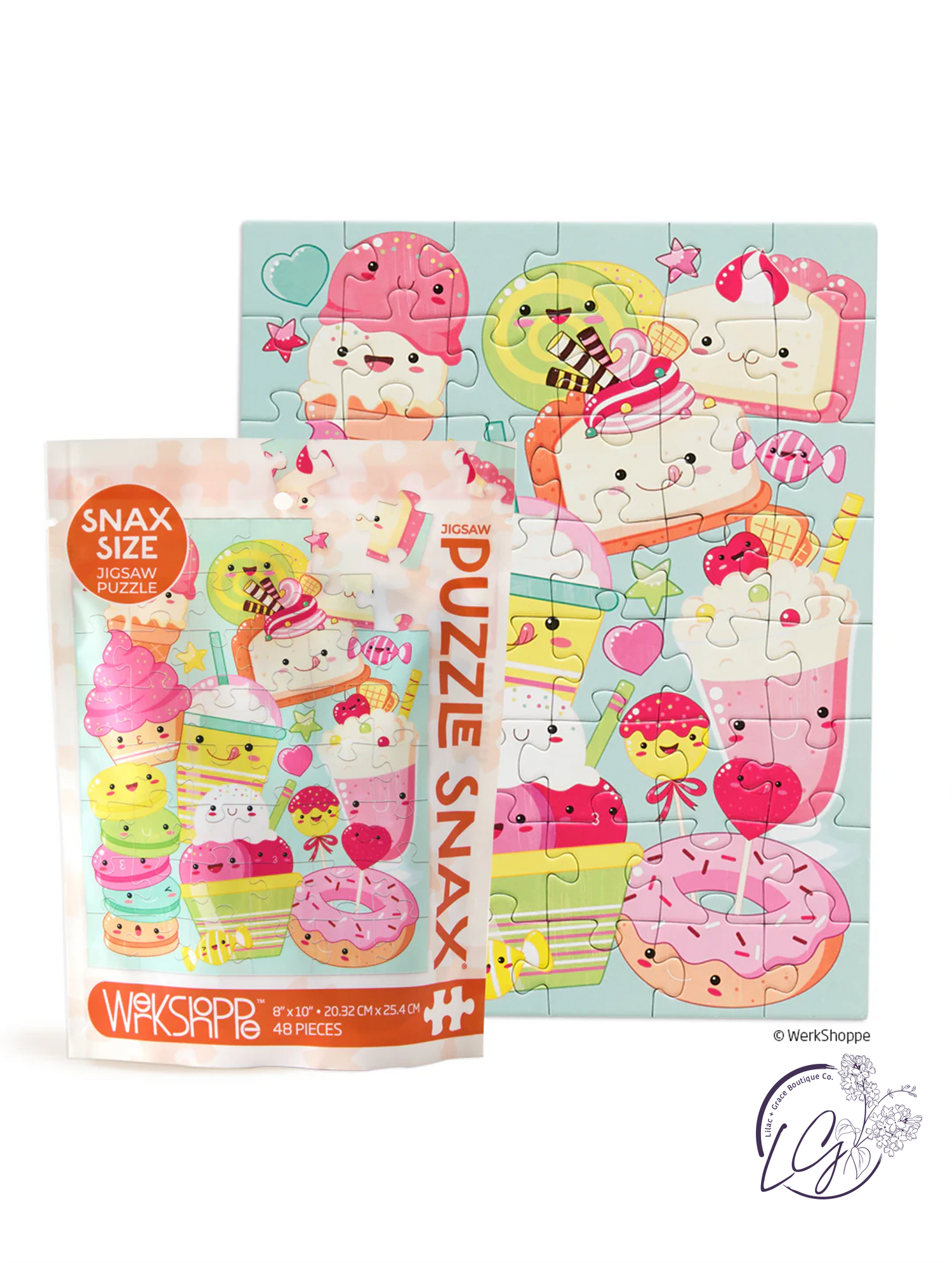 Delight in the charm of this kawaii-inspired 48-piece Puzzle Snax showcasing adorable, smiling foods. Tasty treats come to life and will evoke joy and creativity in children and adults alike.