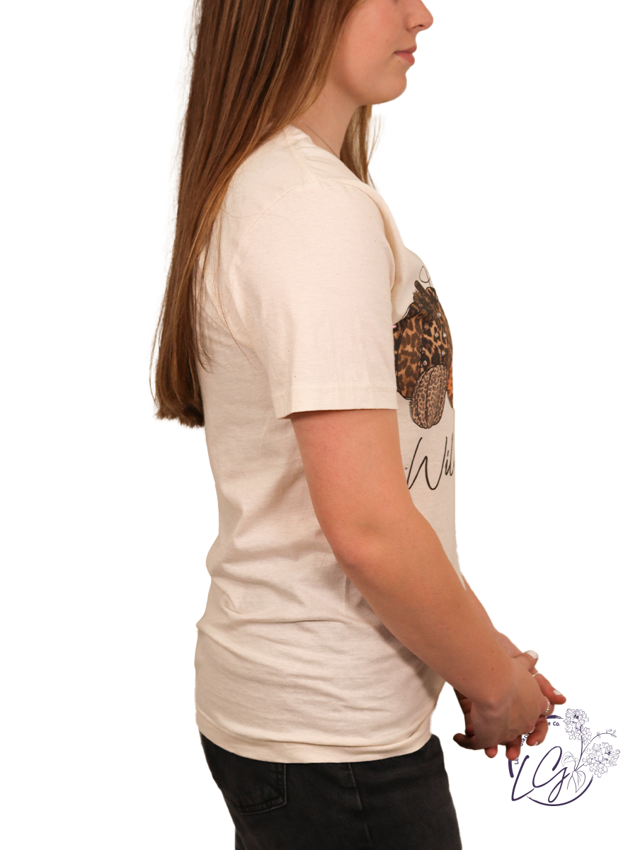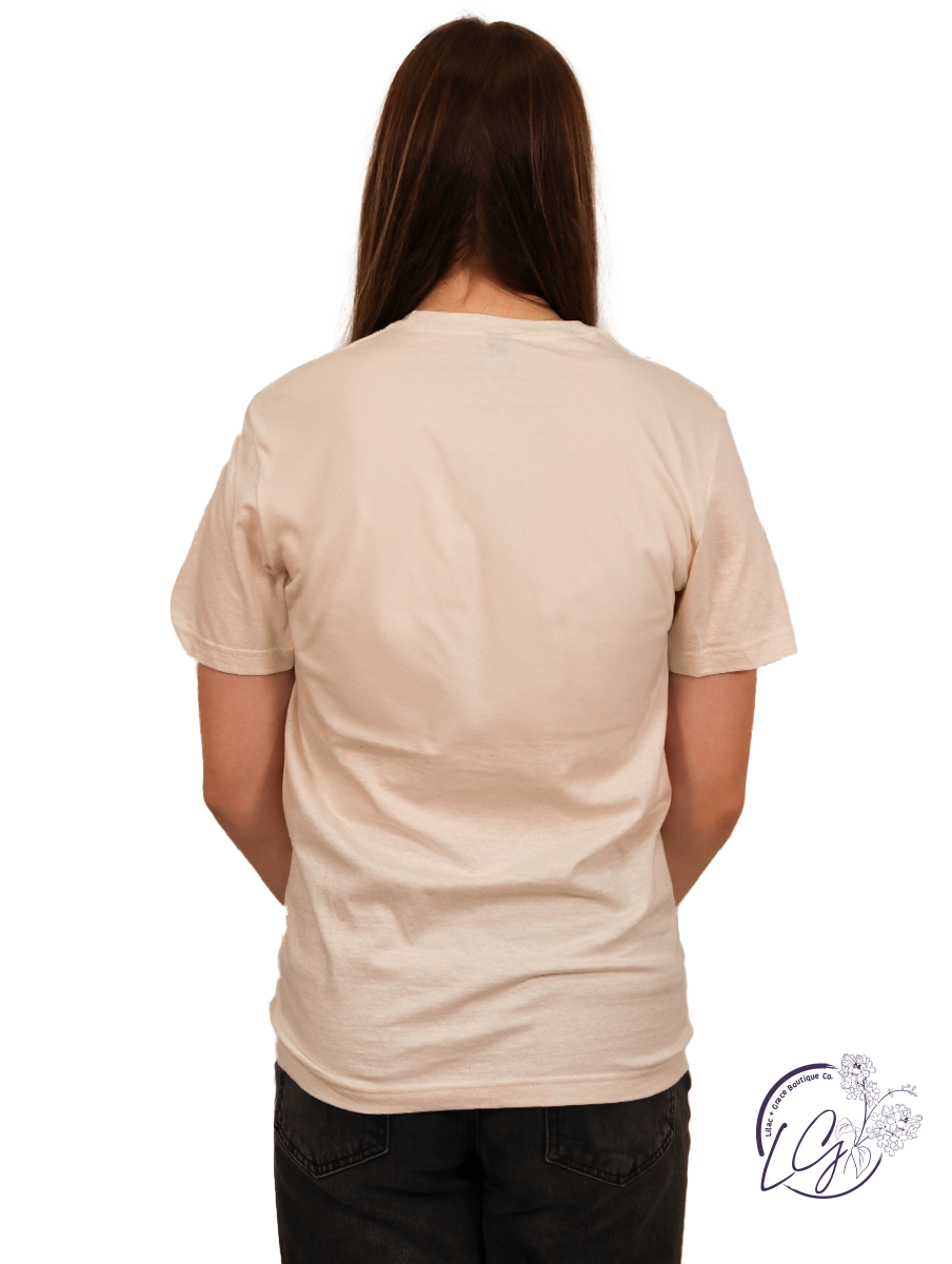 On A Cream Colored Tee 100% Cotton