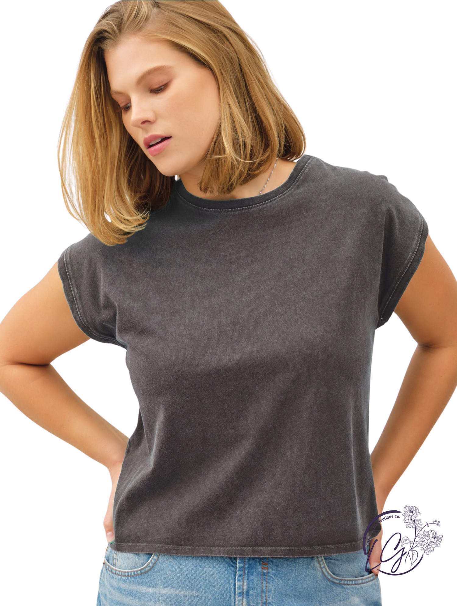 This Curvy Block By Block Shirt is your new go-to for laid-back vibes. Featuring playful cap sleeves and a comfy round neck, it’s designed for easy pullover wear. The cropped length and relaxed fit keep things breezy, while the cool acid wash adds a touch of retro flair. Perfect for casual days when you want to keep it simple but stylish.