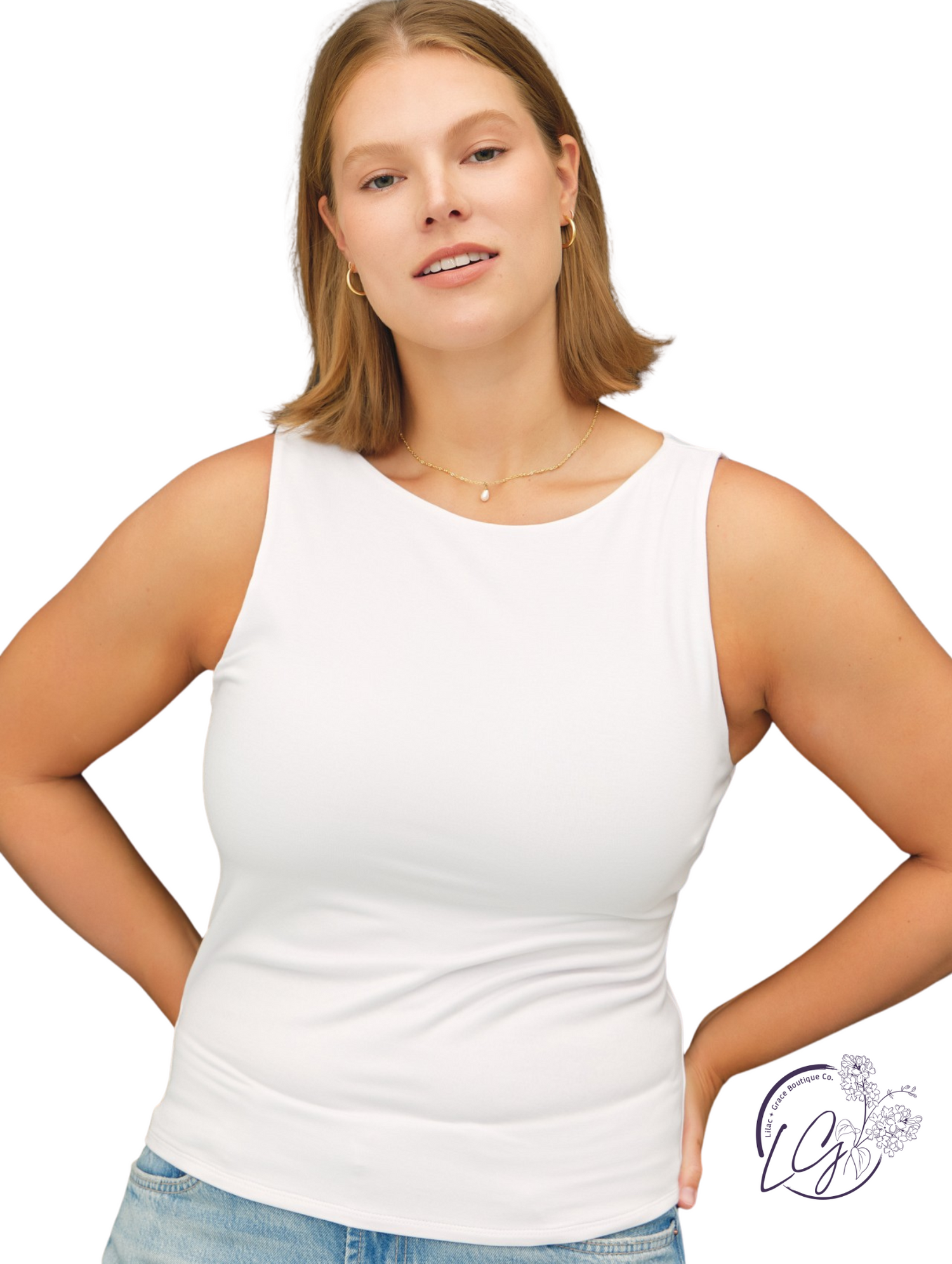 Embrace your curves with the Curvy Glass Reflects Light Tank, designed just for you! This soft, stretchy jersey tank hugs your shape comfortably, featuring a flattering boat neckline and sleeveless cut perfect for layering or wearing solo. Double-lined for extra security and crafted from a spandex blend, it offers all-day comfort and confidence. Its upper hip length makes it easy to style with your favorite bottoms, making this essential piece a playful must-have in your wardrobe.